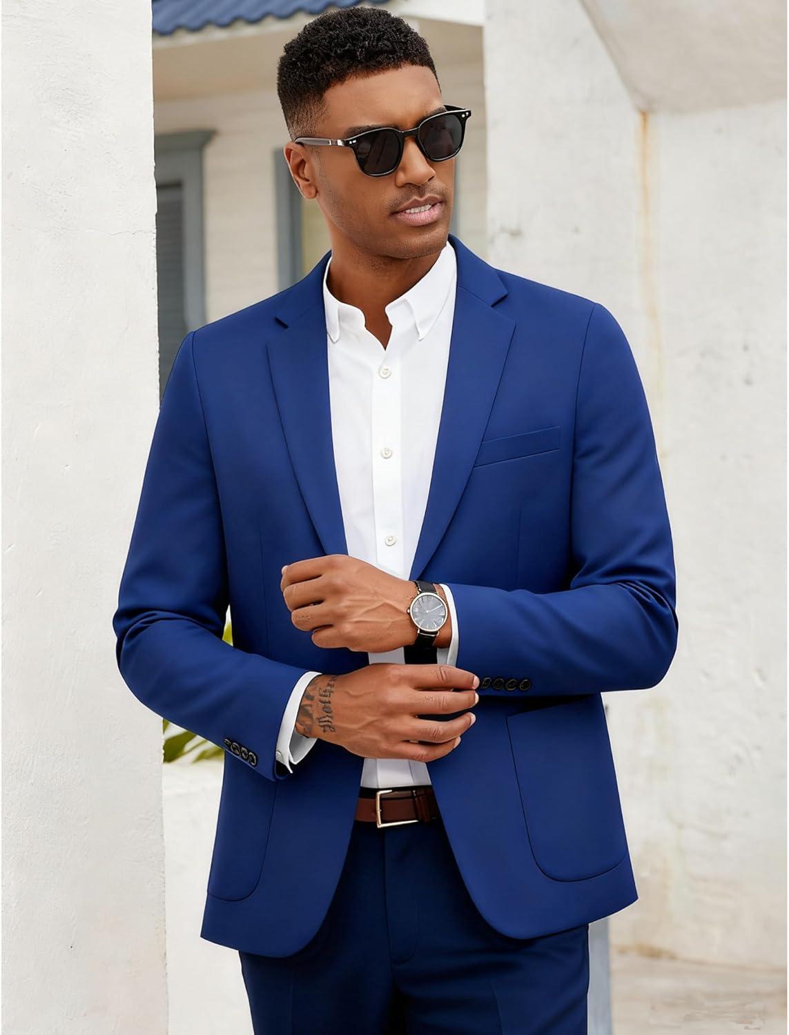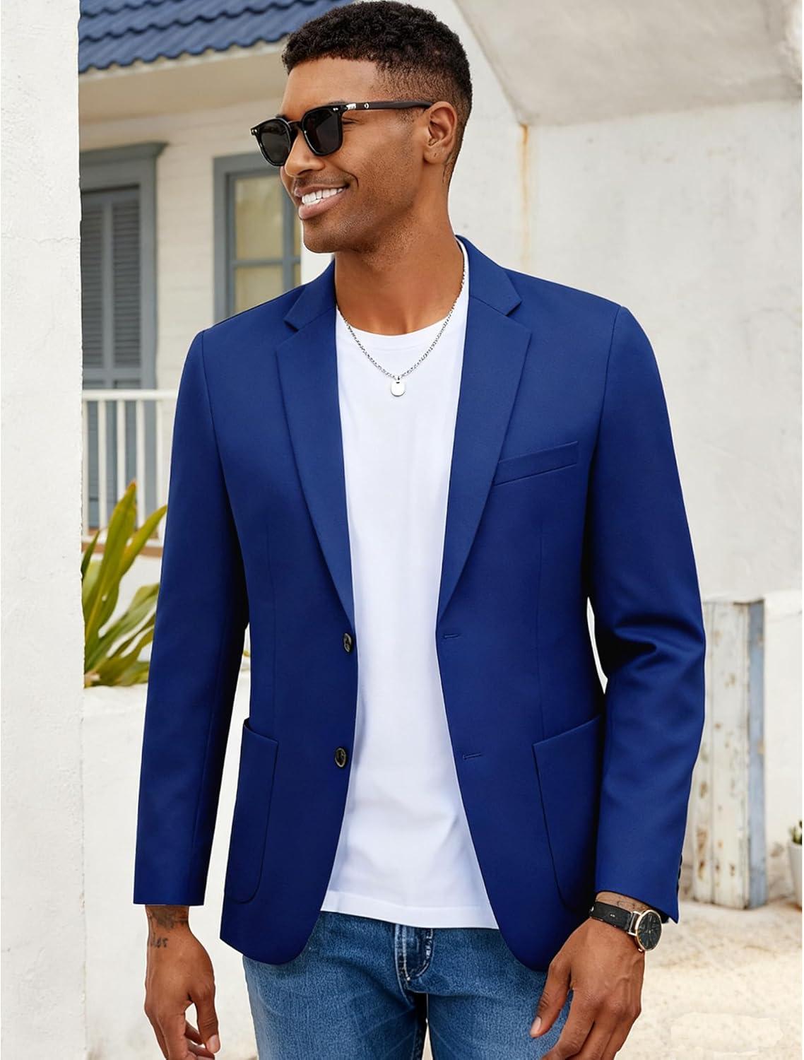 COOFANDY Mens Casual Blazer Slim Fit Sport Coat Lightweight Two Button Suit Jackets(B-royal Blue)