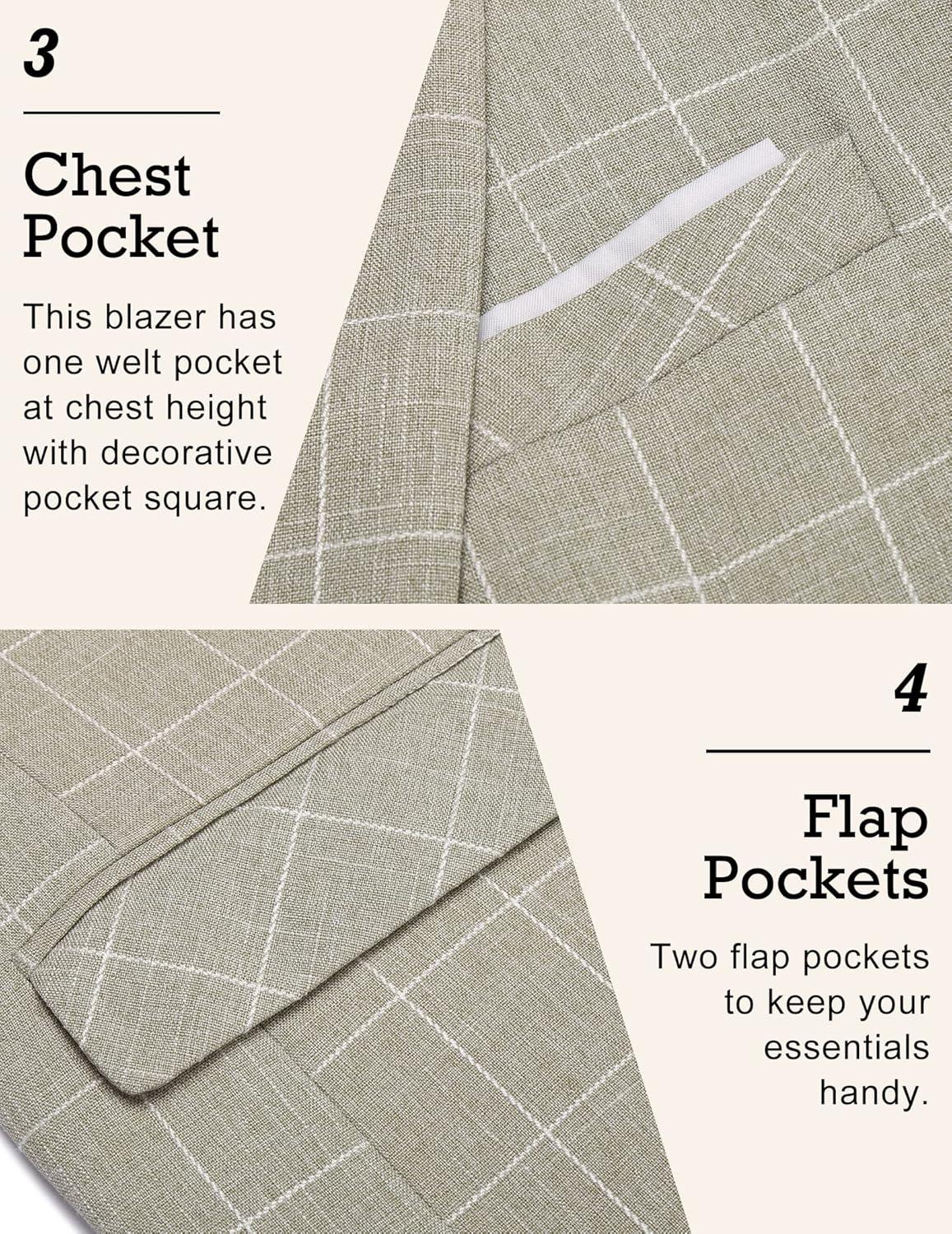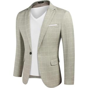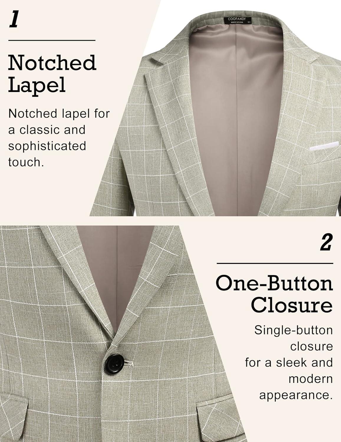 COOFANDY Men’s Blazer Casual Sport Coats Slim Fit One Button Suit Jacket Lightweight Sports Jacket(Plaid Blazer- Light Khaki)