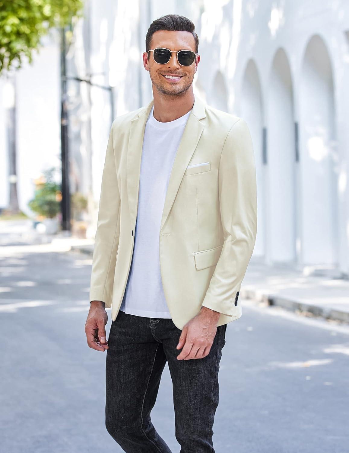 COOFANDY Men’s Blazer Casual Sport Coats Slim Fit One Button Suit Jacket Lightweight Sports Jacket(Plain Color – Beige)
