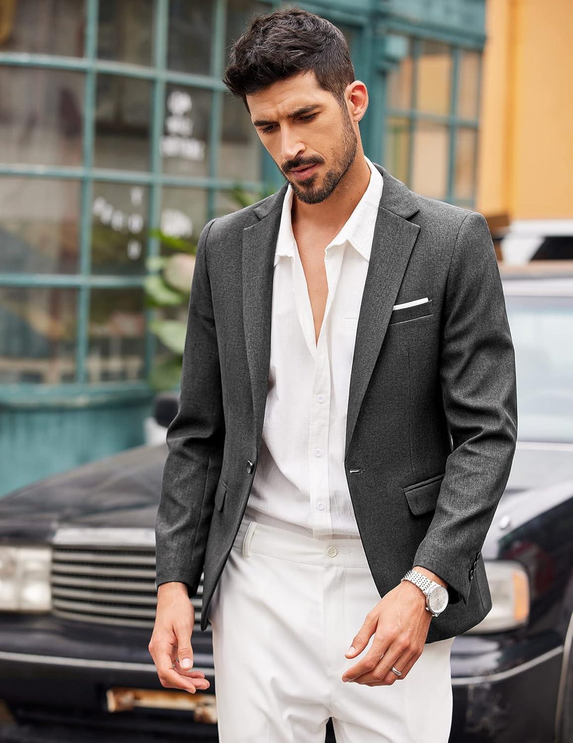 COOFANDY Men’s Blazer Casual Sport Coats Slim Fit One Button Suit Jacket Lightweight Sports Jacket(Grey)