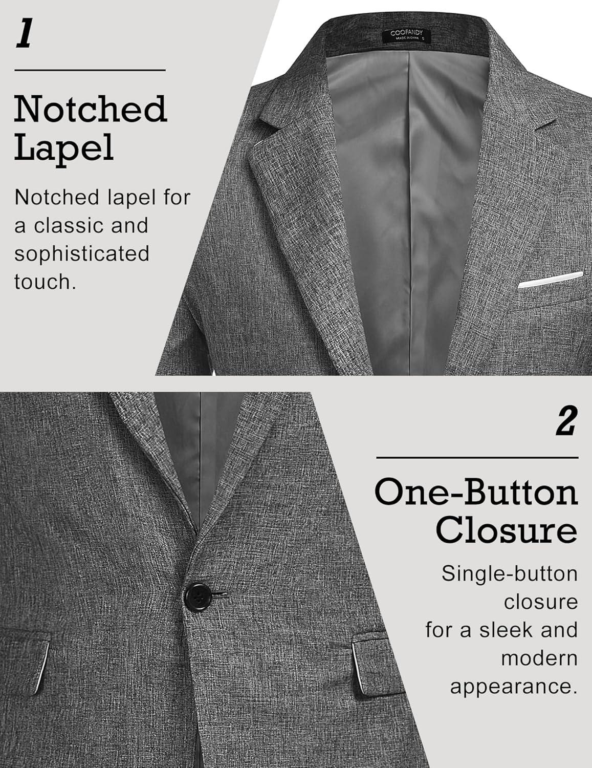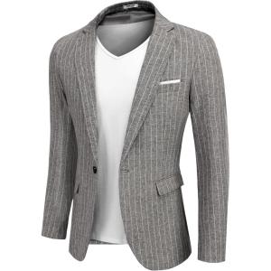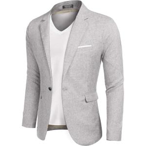 COOFANDY Men’s Blazer Casual Sport Coats Slim Fit One Button Suit Jacket Lightweight Sports Jacket(Linen Gray)