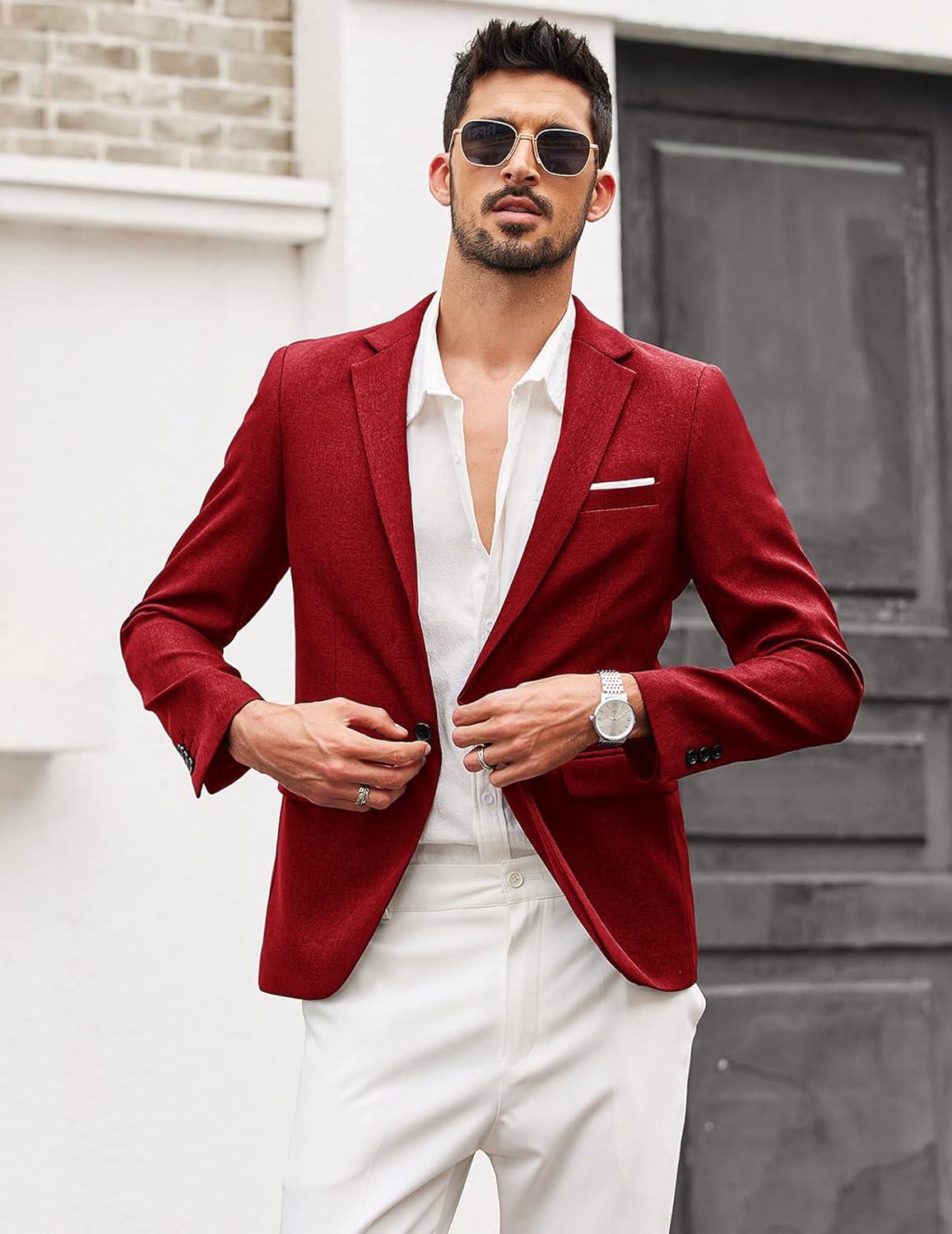 COOFANDY Men’s Blazer Casual Sport Coats Slim Fit One Button Suit Jacket Lightweight Sports Jacket(Wine Red)