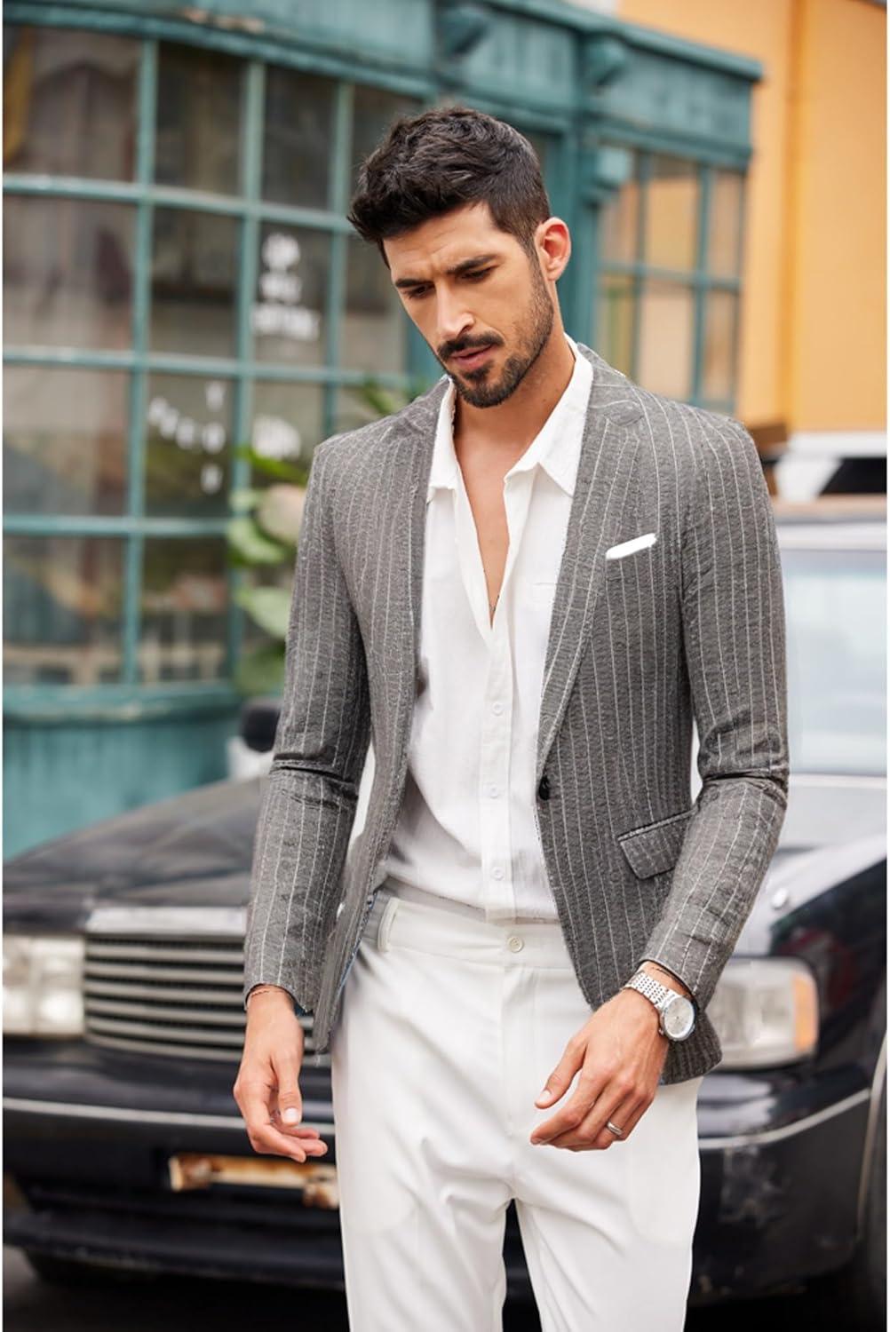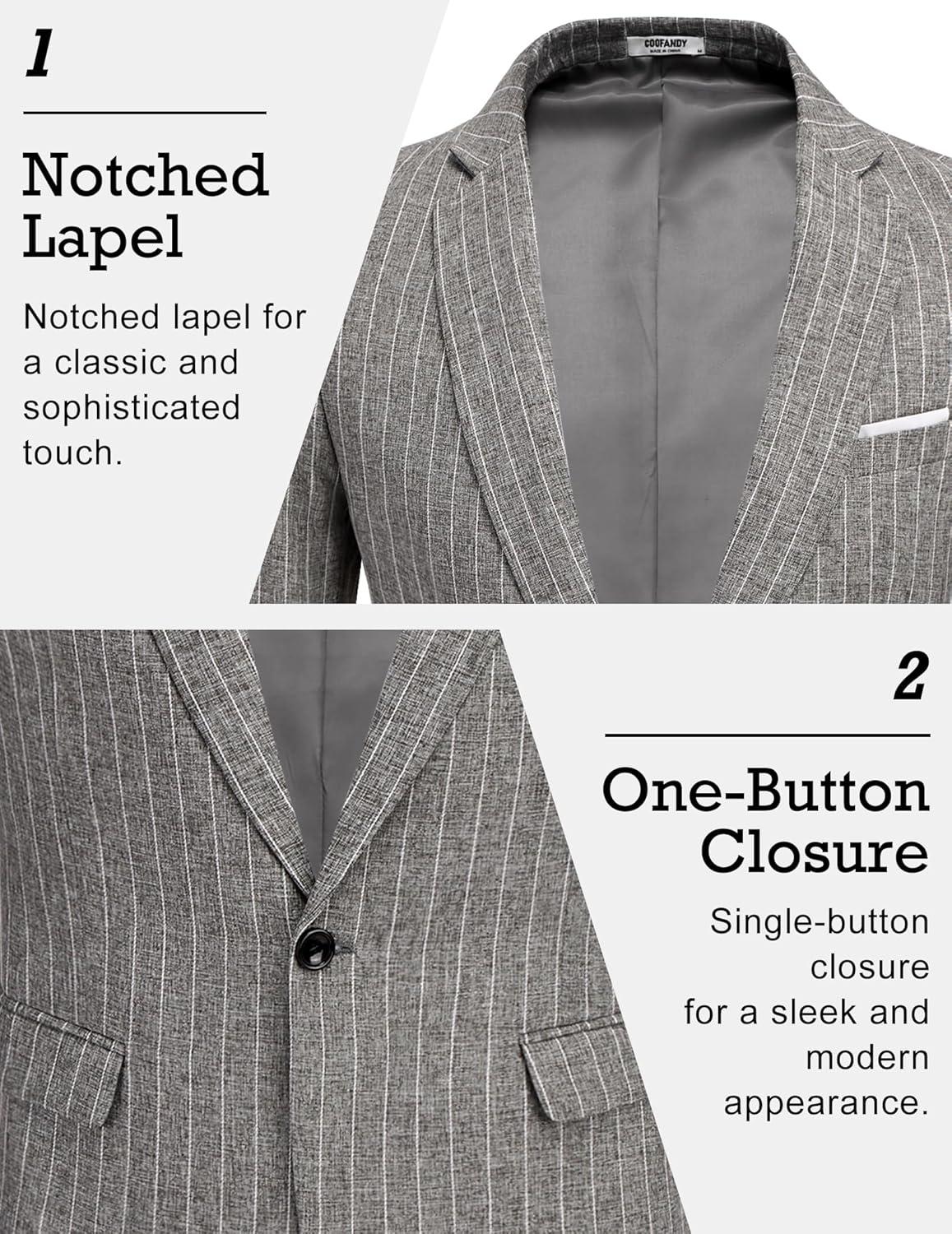COOFANDY Men’s Blazer Casual Sport Coats Slim Fit One Button Suit Jacket Lightweight Sports Jacket(Striped Blazer – Dark Gray)