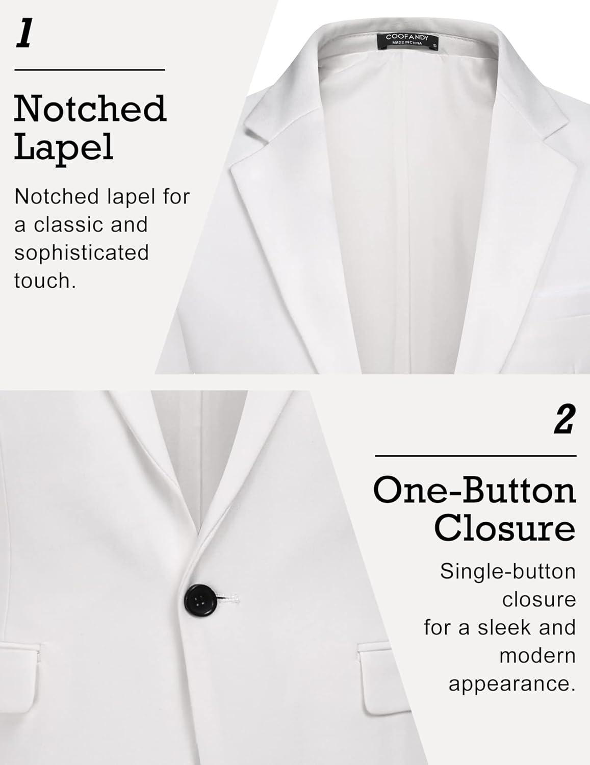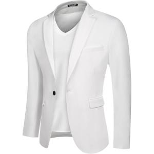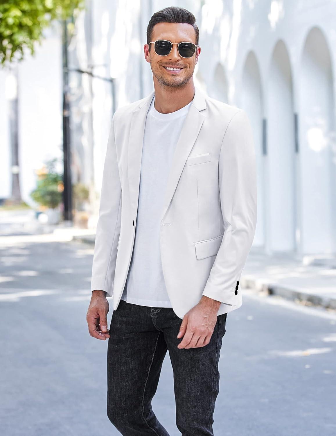 COOFANDY Men’s Blazer Casual Sport Coats Slim Fit One Button Suit Jacket Lightweight Sports Jacket(White)
