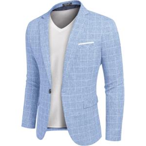 COOFANDY Men’s Blazer Casual Sport Coats Slim Fit One Button Suit Jacket Lightweight Sports Jacket(Plaid Blazer – Light Blue)