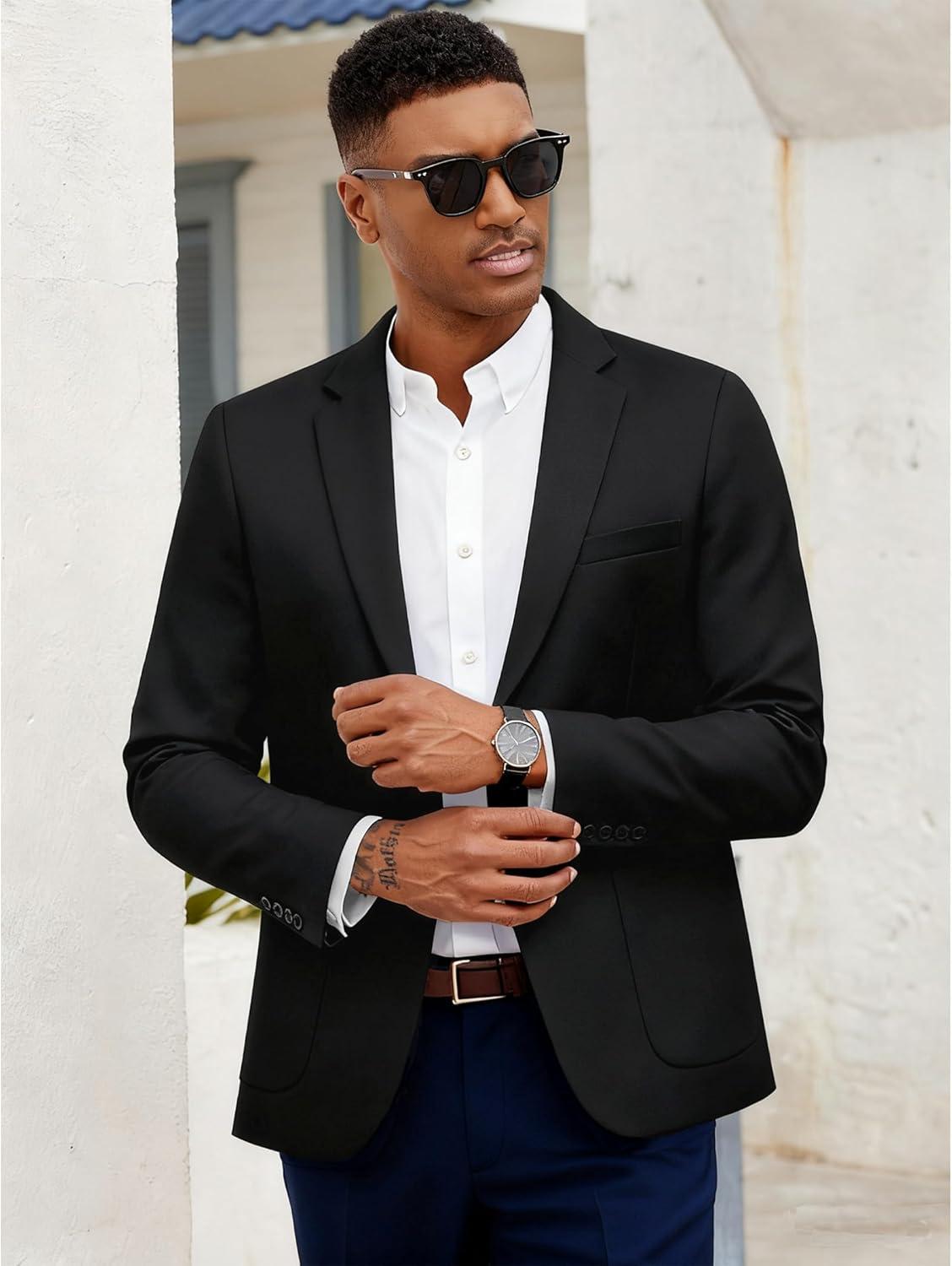 COOFANDY Mens Casual Blazer Slim Fit Sport Coats One Button Business Suit Jacket(Black)