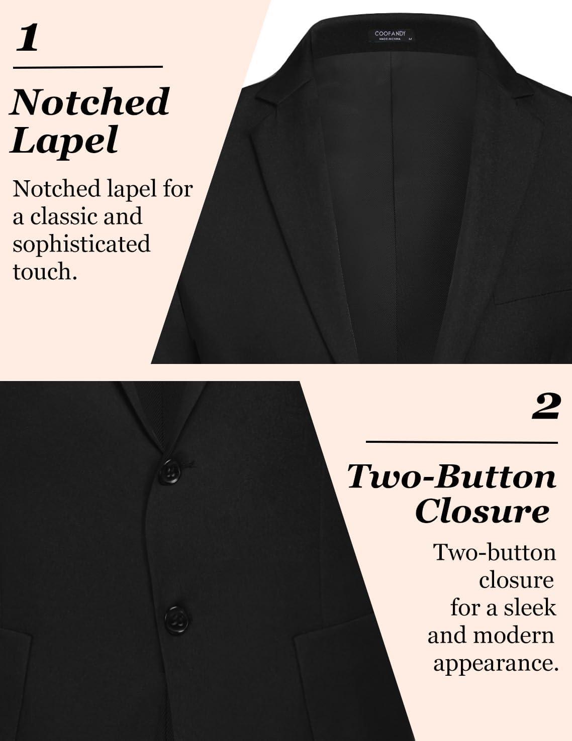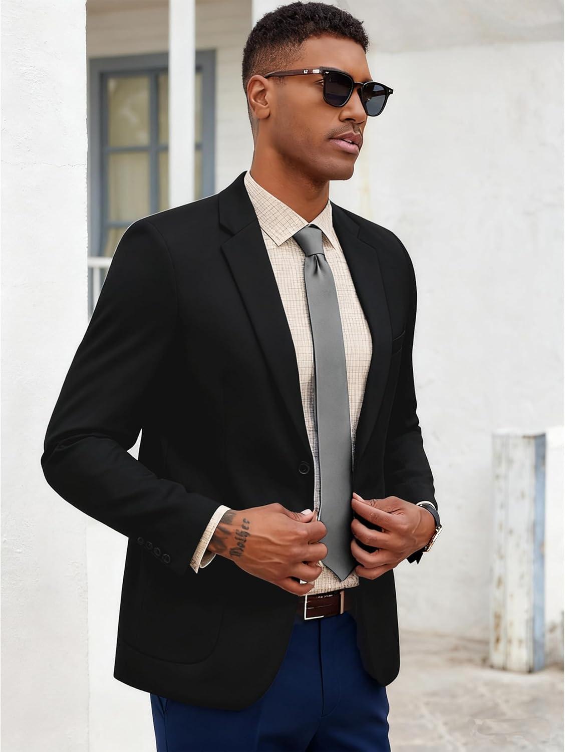 COOFANDY Mens Casual Blazer Slim Fit Sport Coat Lightweight Two Button Suit Jackets(Black)