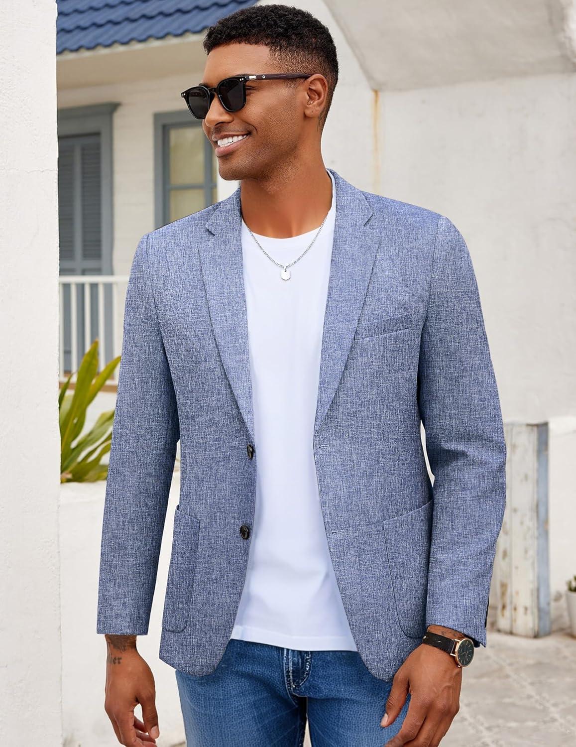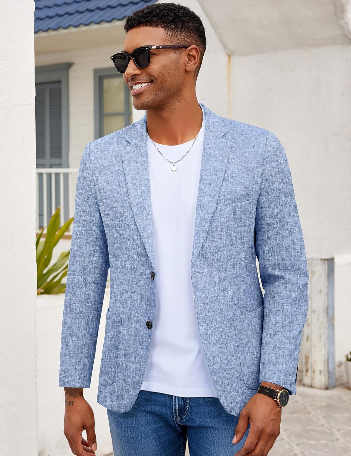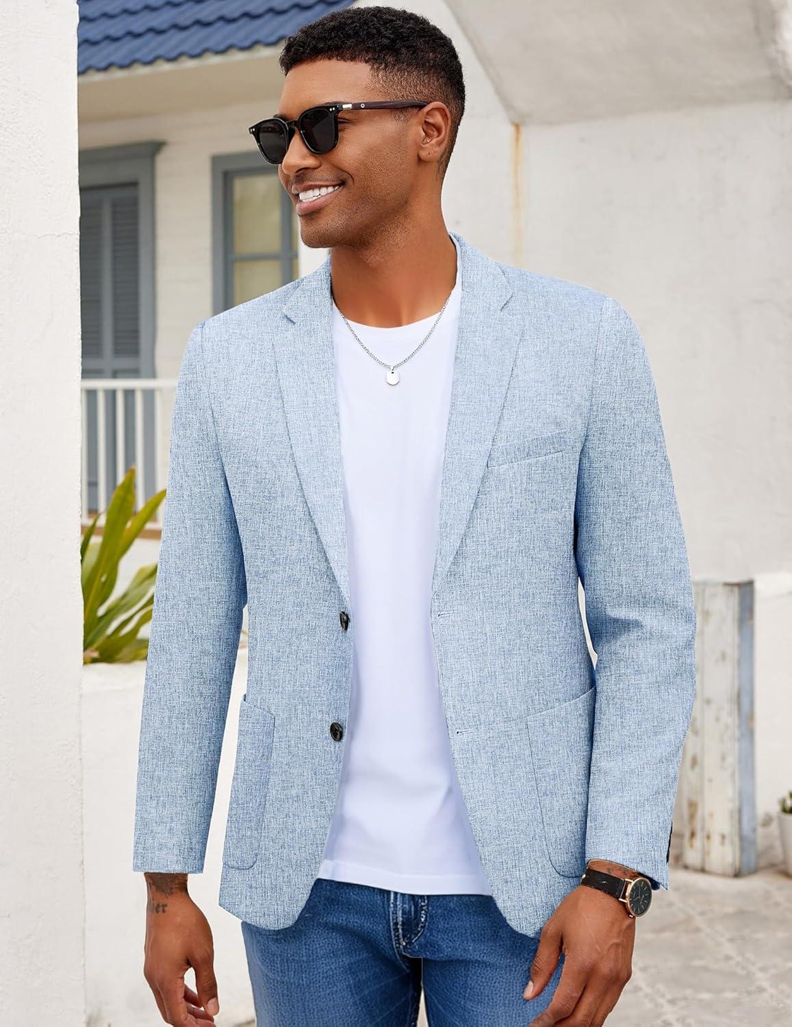 COOFANDY Mens Casual Blazer Slim Fit Sport Coat Lightweight Two Button Suit Jackets(Light Blue)