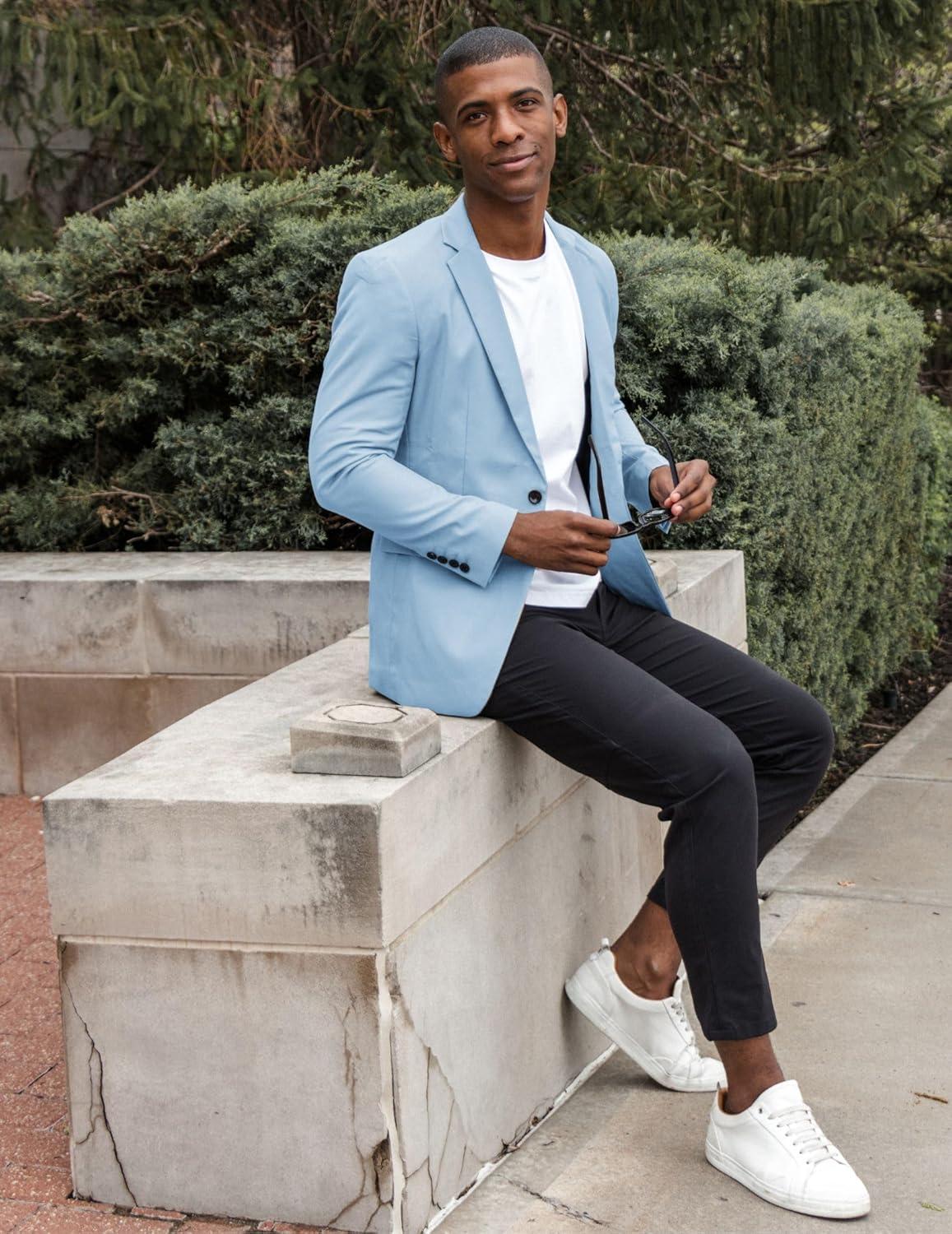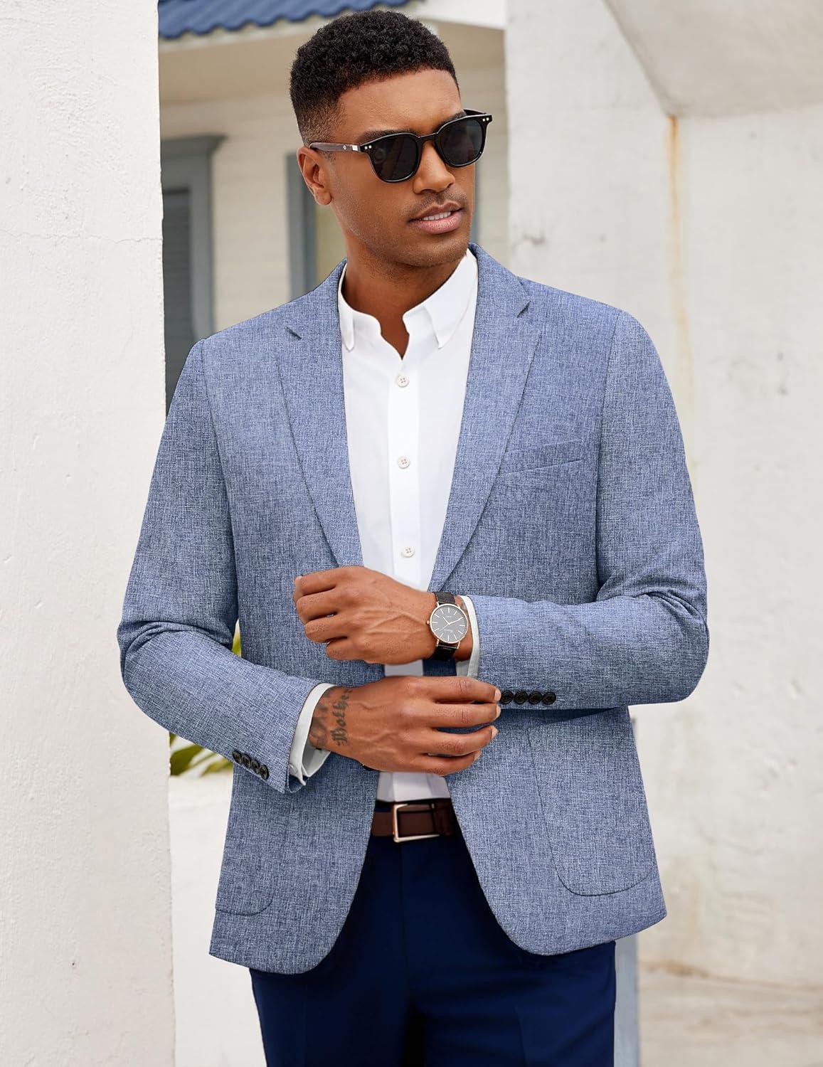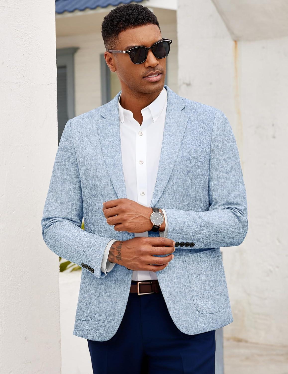 COOFANDY Mens Casual Blazer Slim Fit Sport Coat Lightweight Two Button Suit Jackets(Sky Blue)