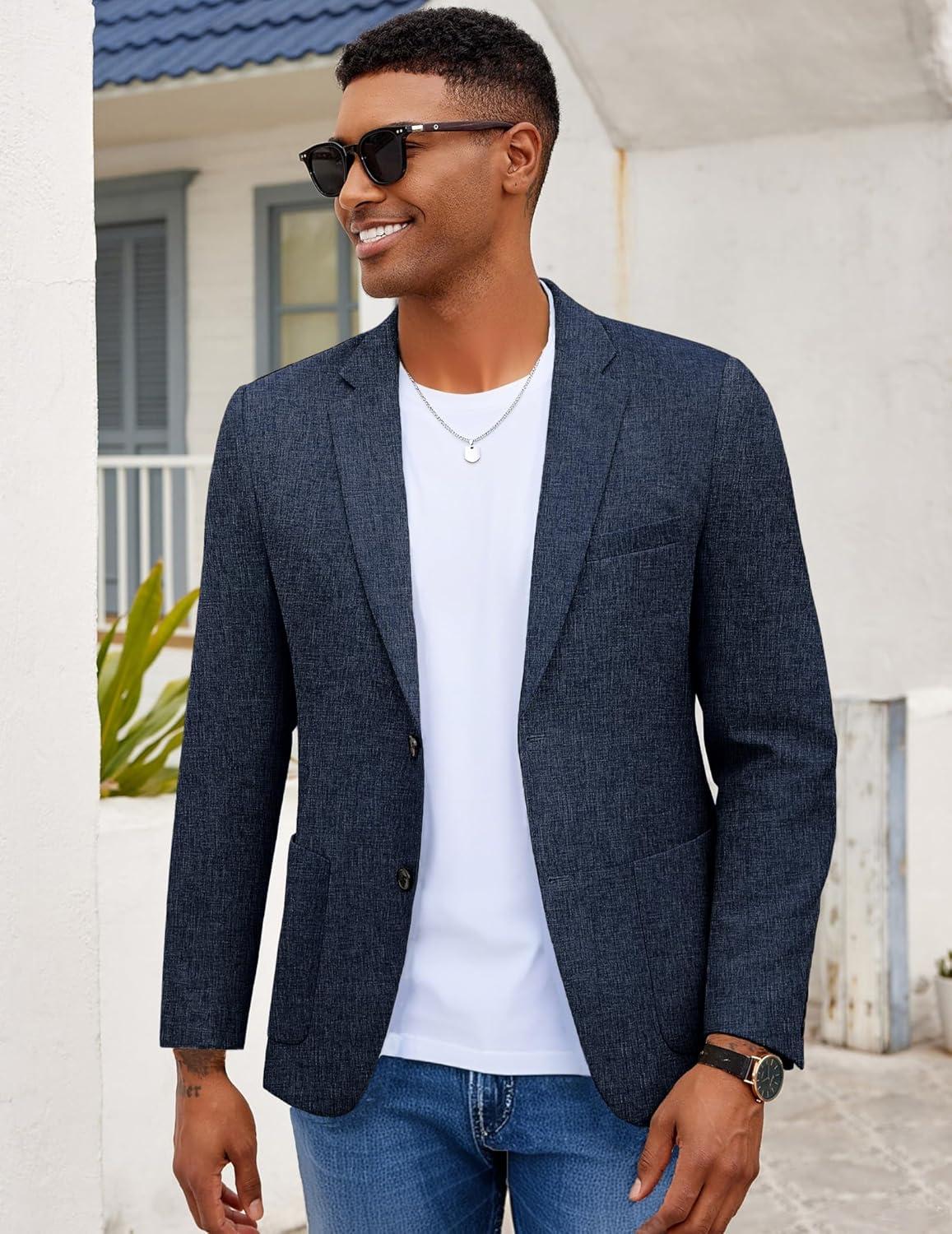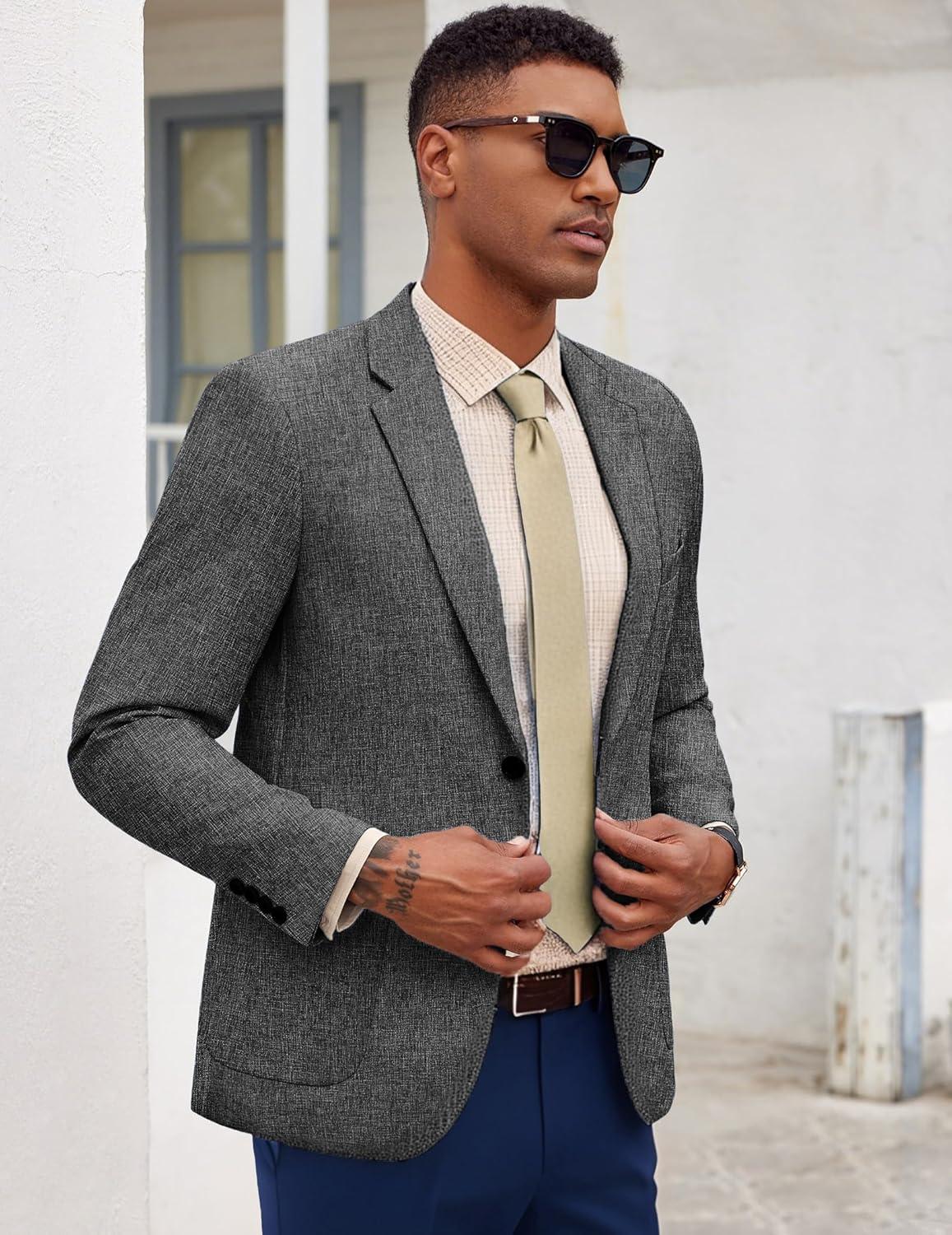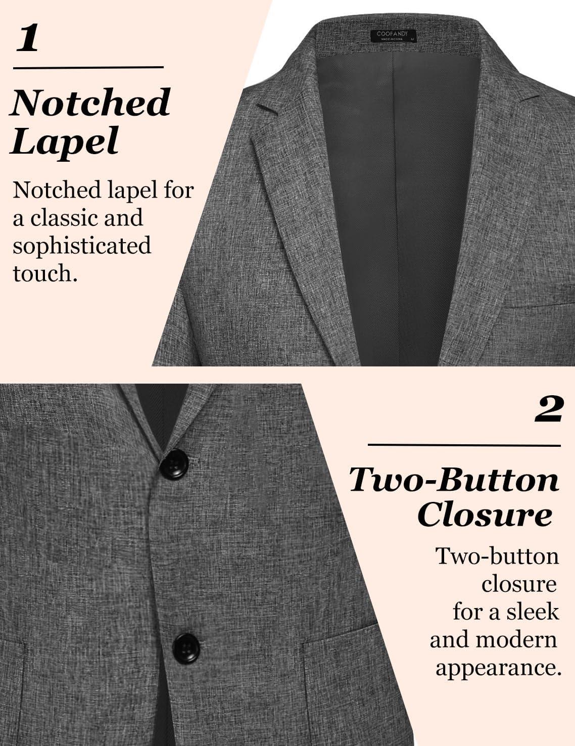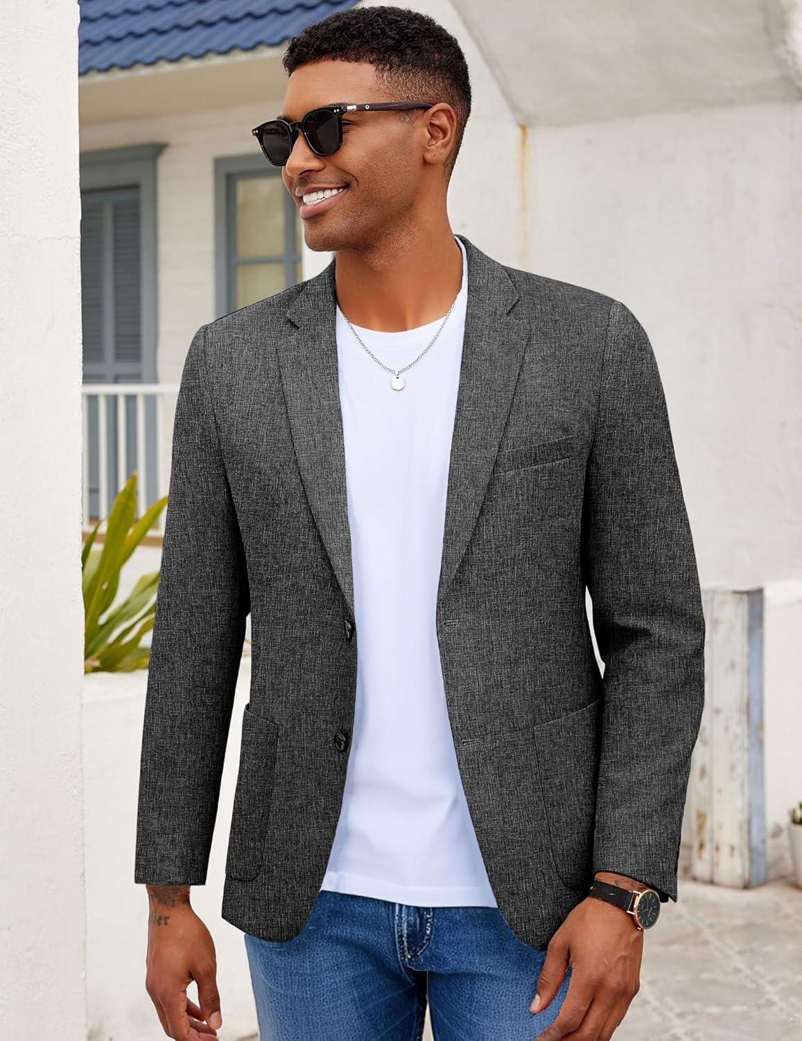 COOFANDY Mens Casual Blazer Slim Fit Sport Coat Lightweight Two Button Suit Jackets(Linen Black)