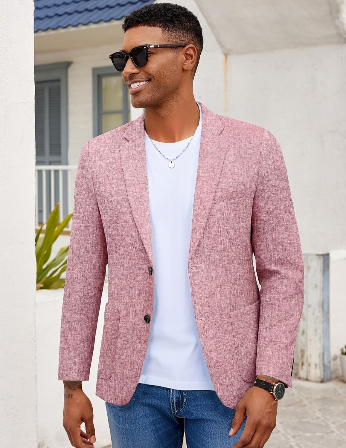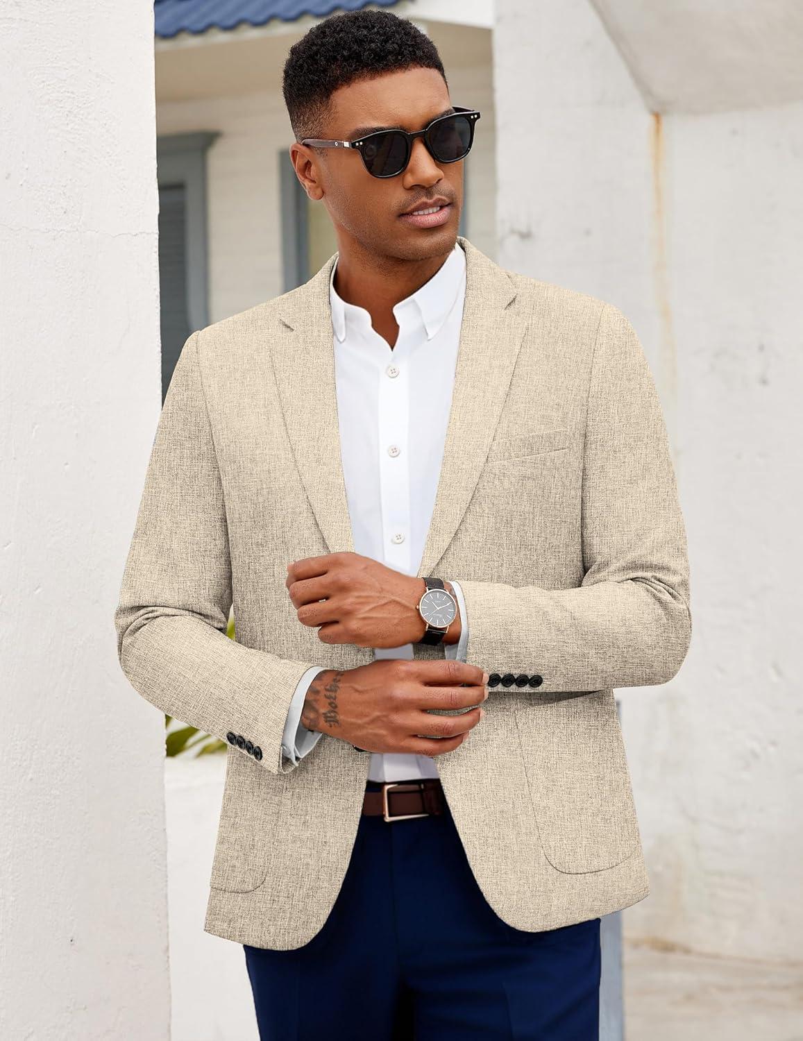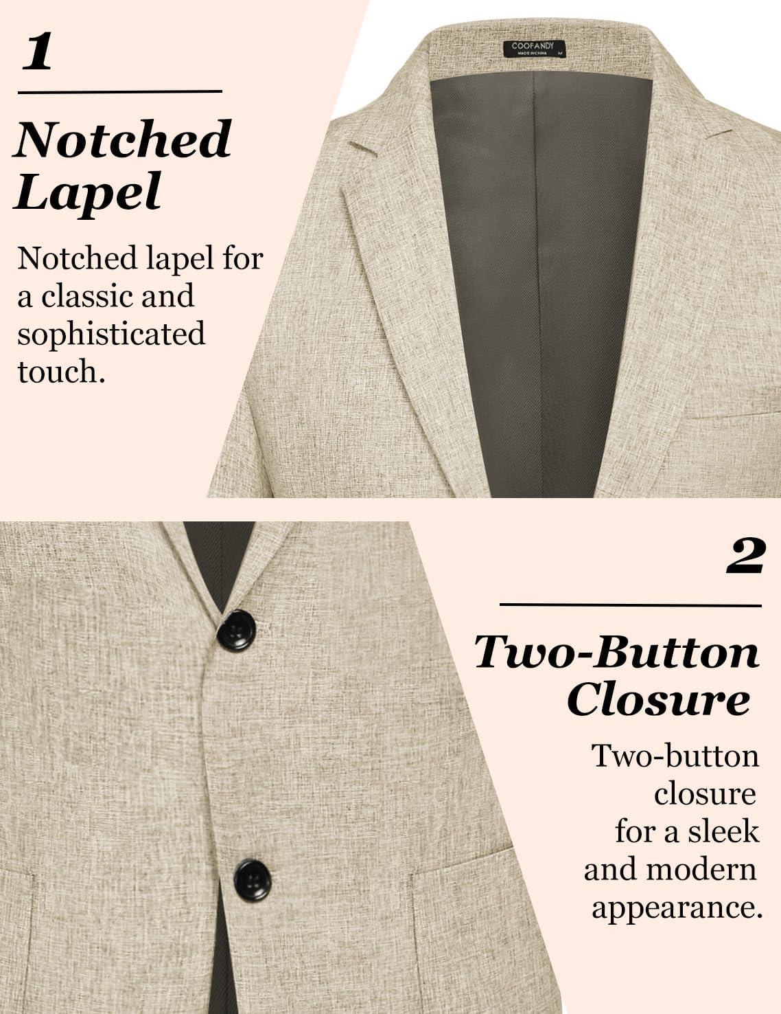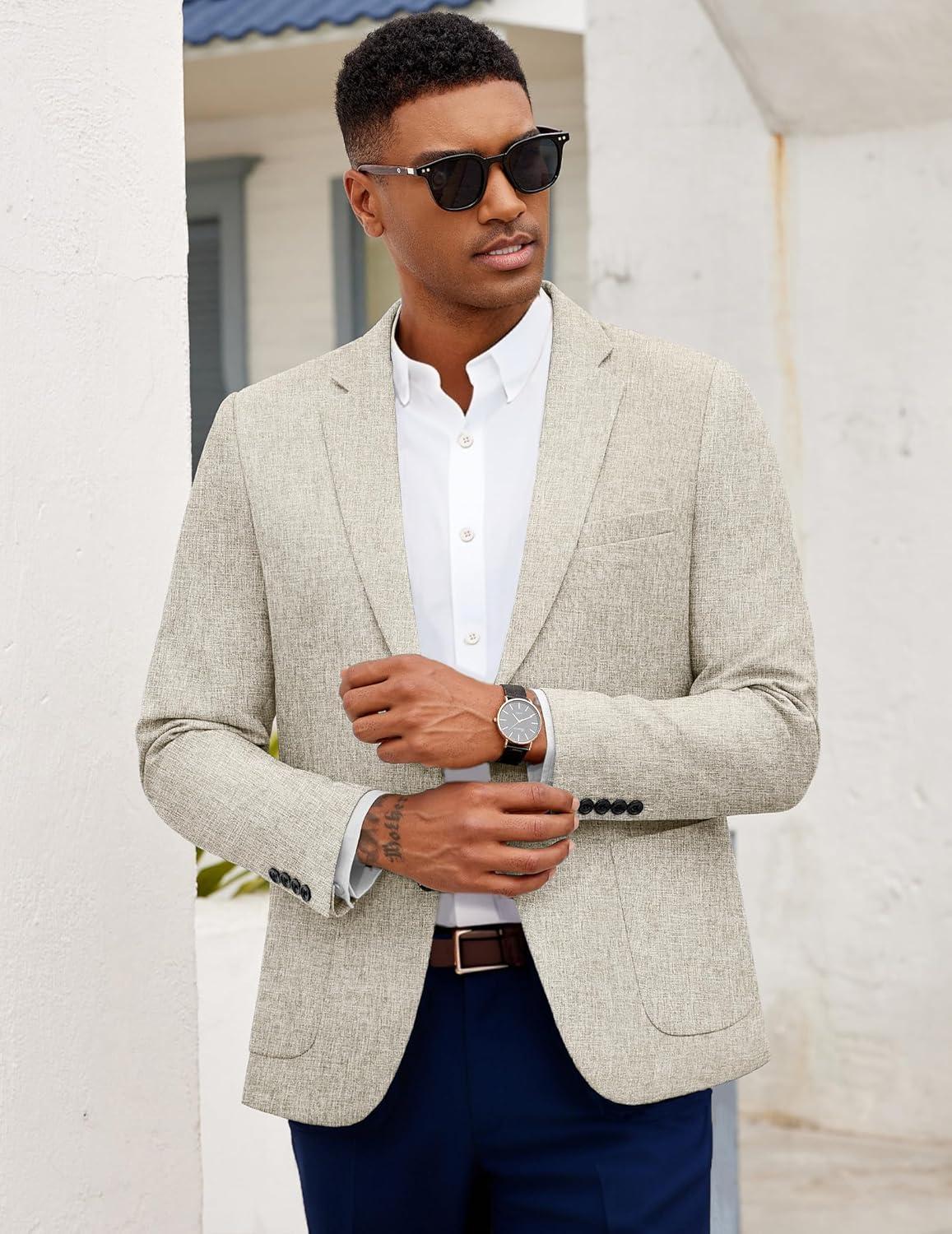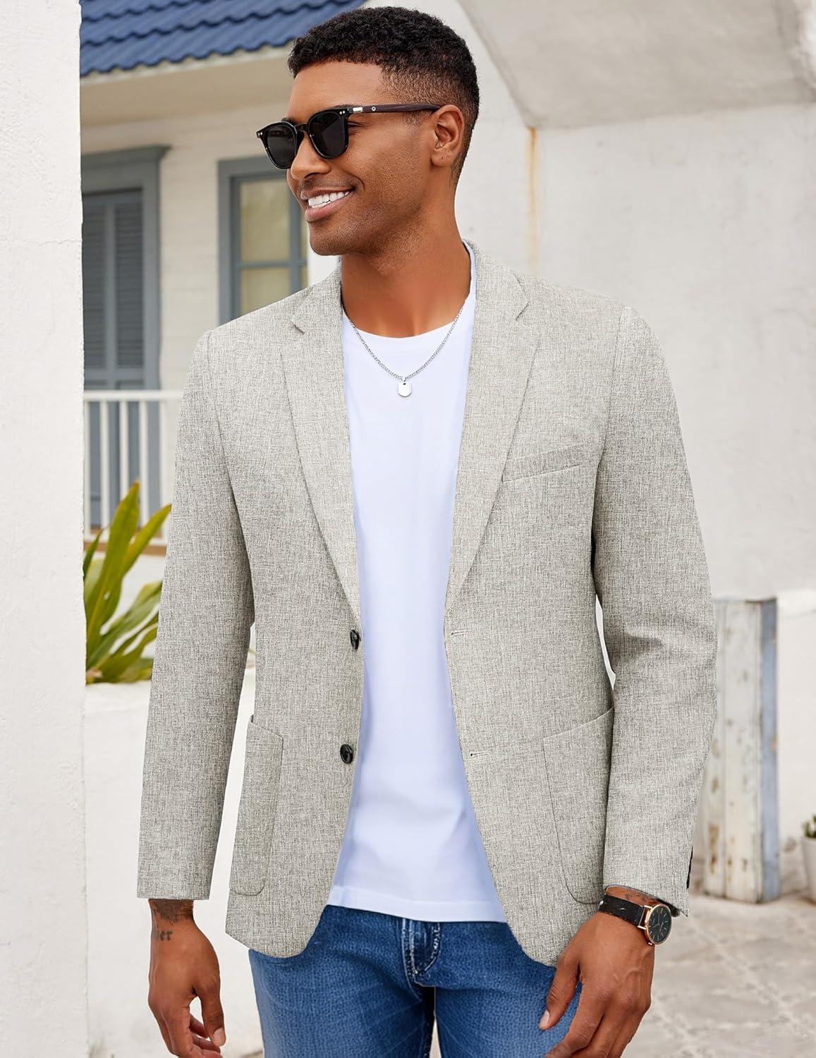 COOFANDY Mens Casual Blazer Slim Fit Sport Coat Lightweight Two Button Suit Jackets(Linen Black)