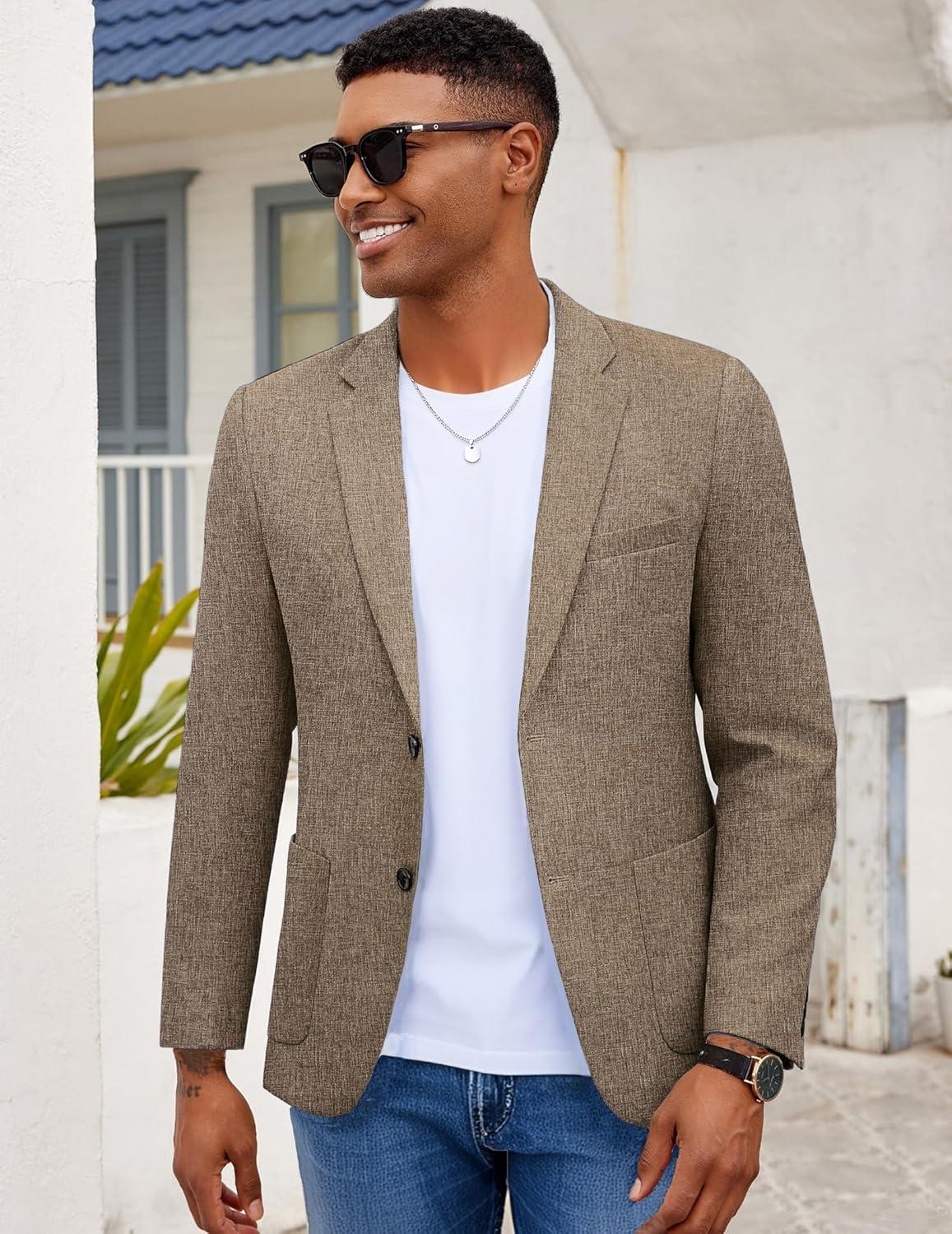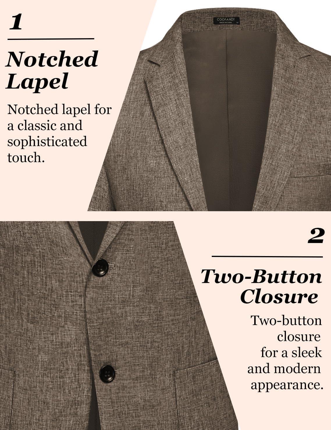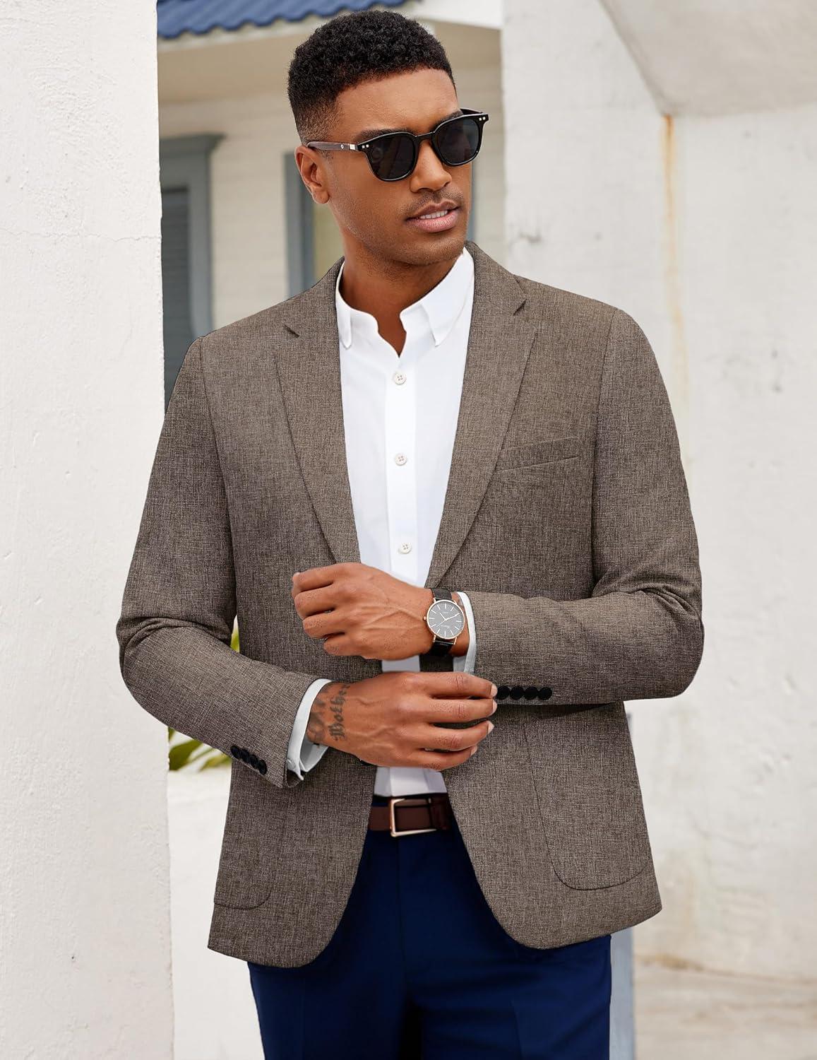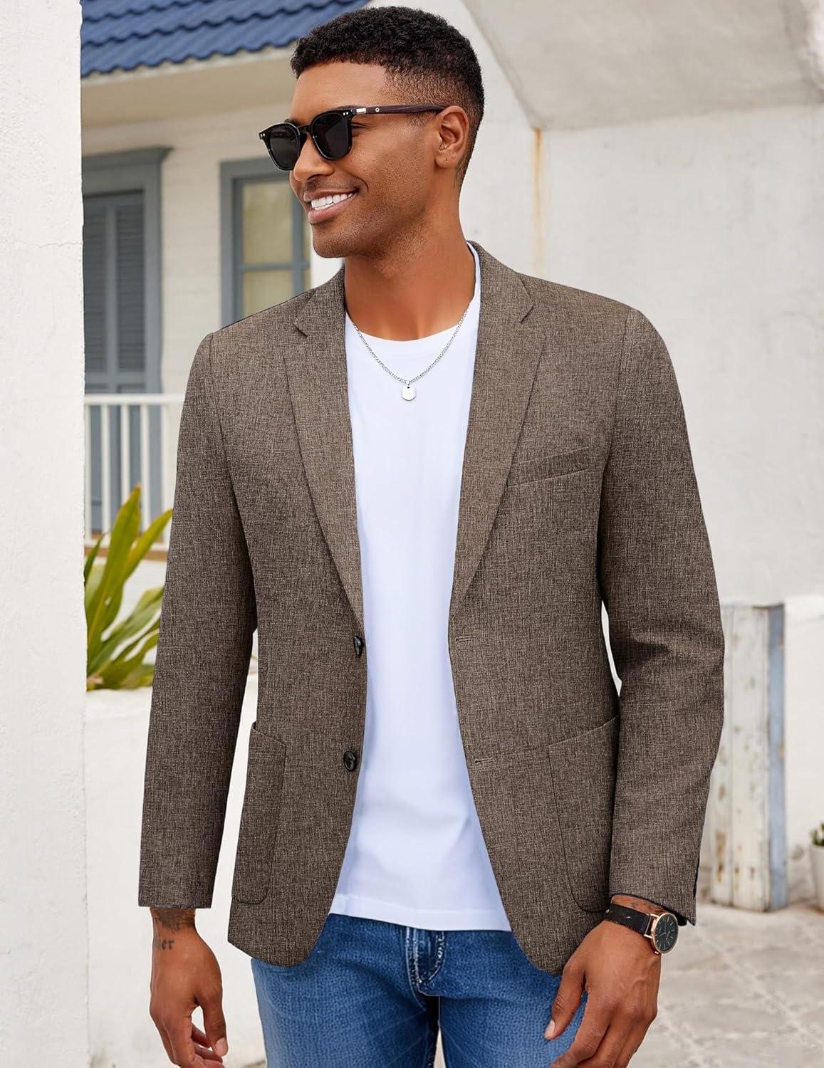 COOFANDY Mens Casual Blazer Slim Fit Sport Coat Lightweight Two Button Suit Jackets(Brown)