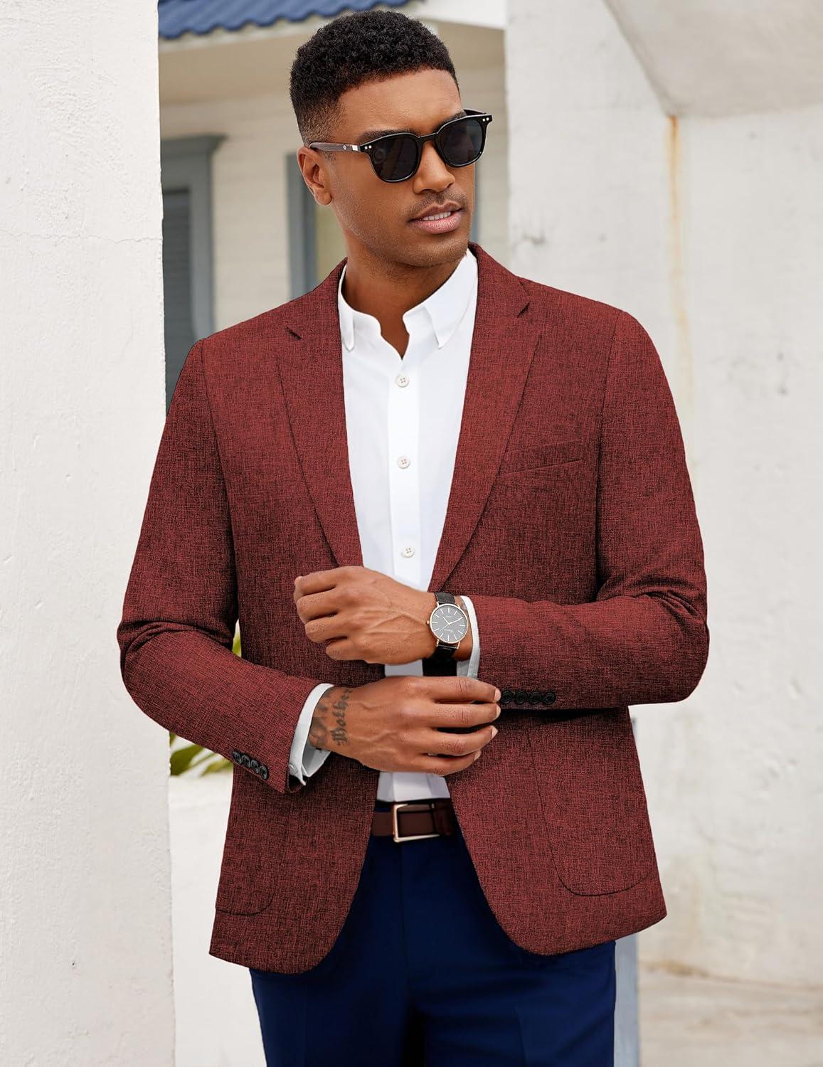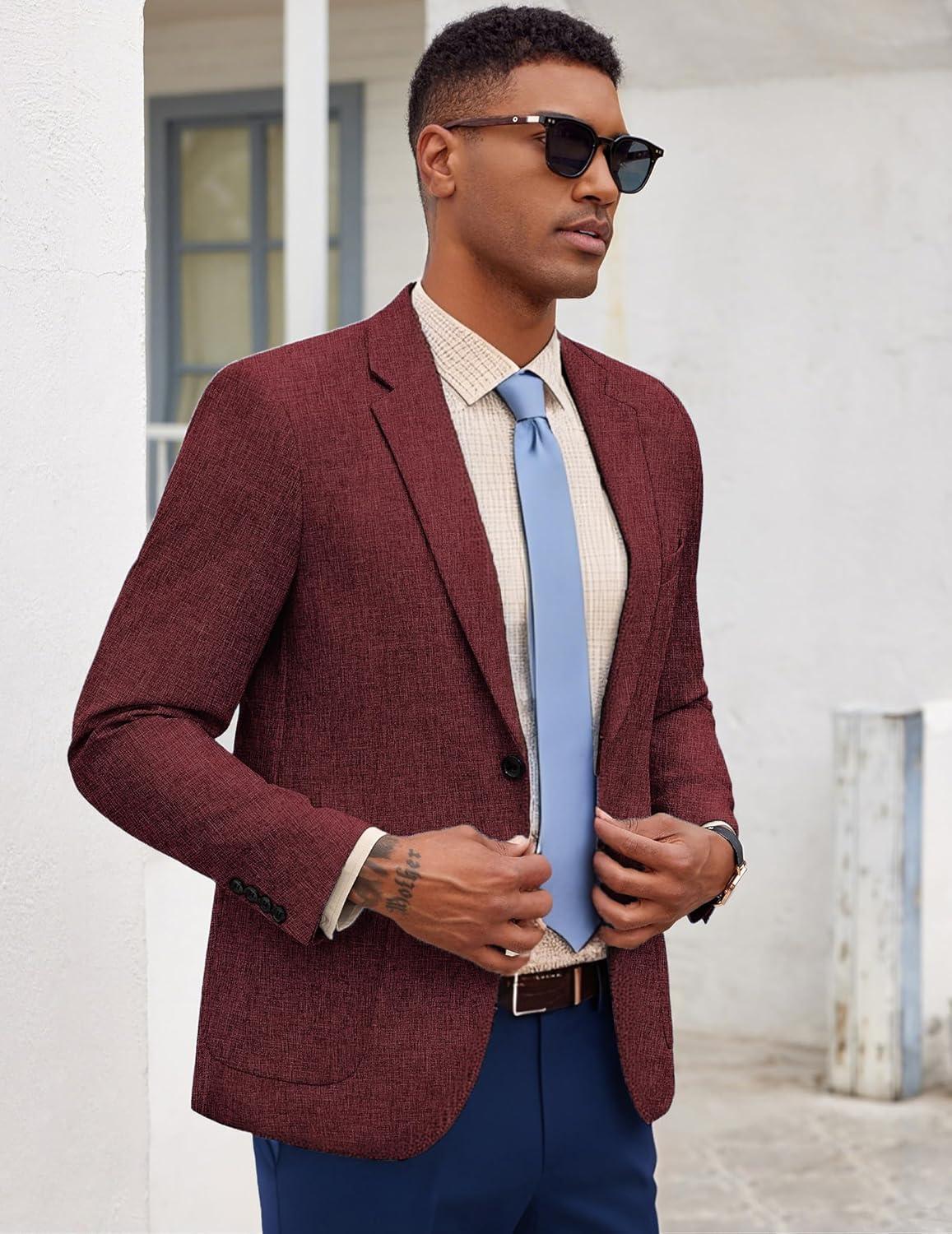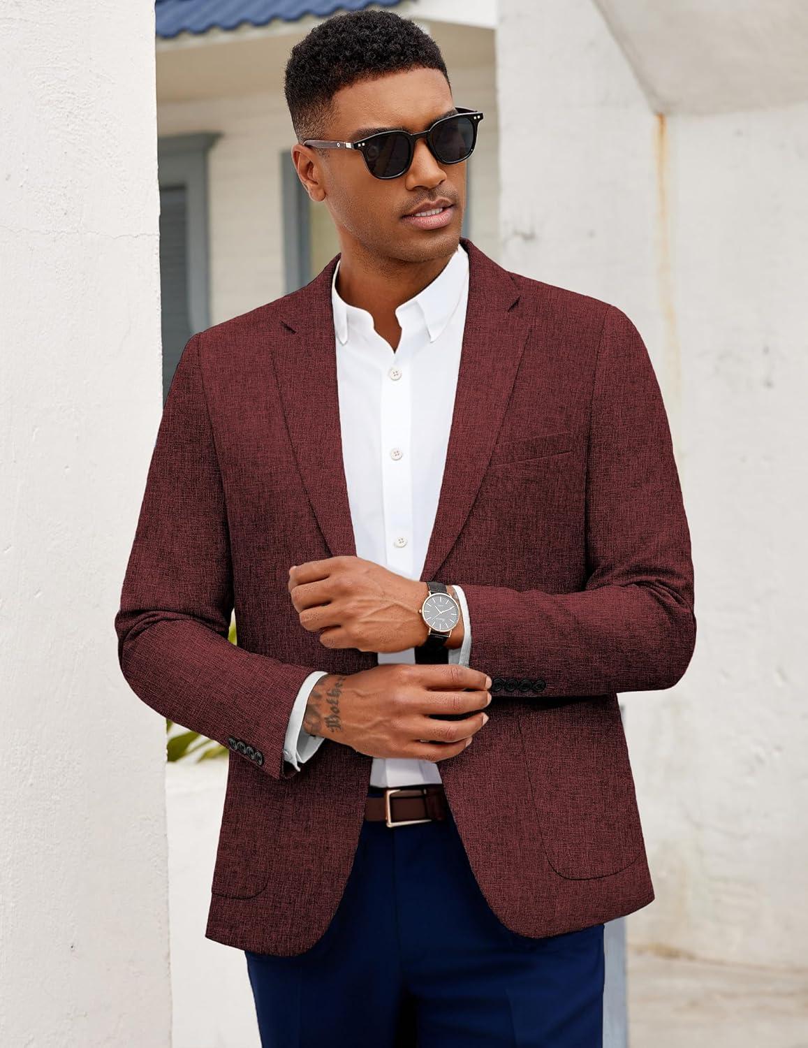 COOFANDY Mens Casual Blazer Slim Fit Sport Coat Lightweight Two Button Suit Jackets(Wine Red)