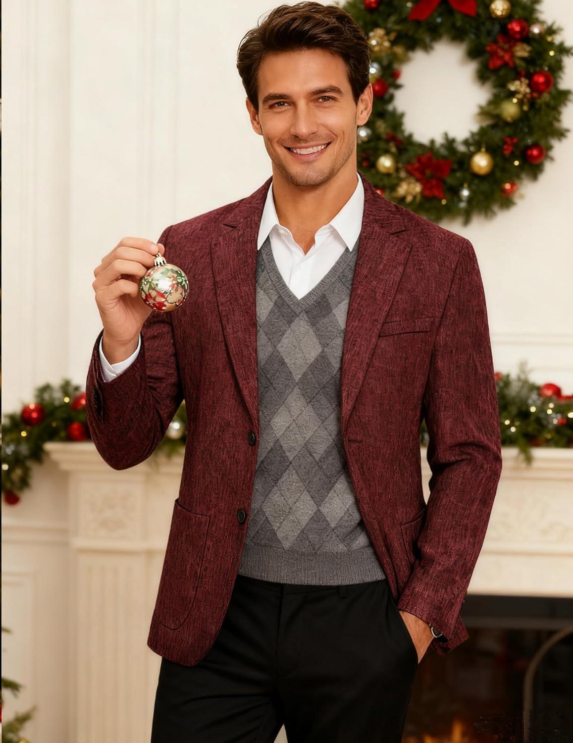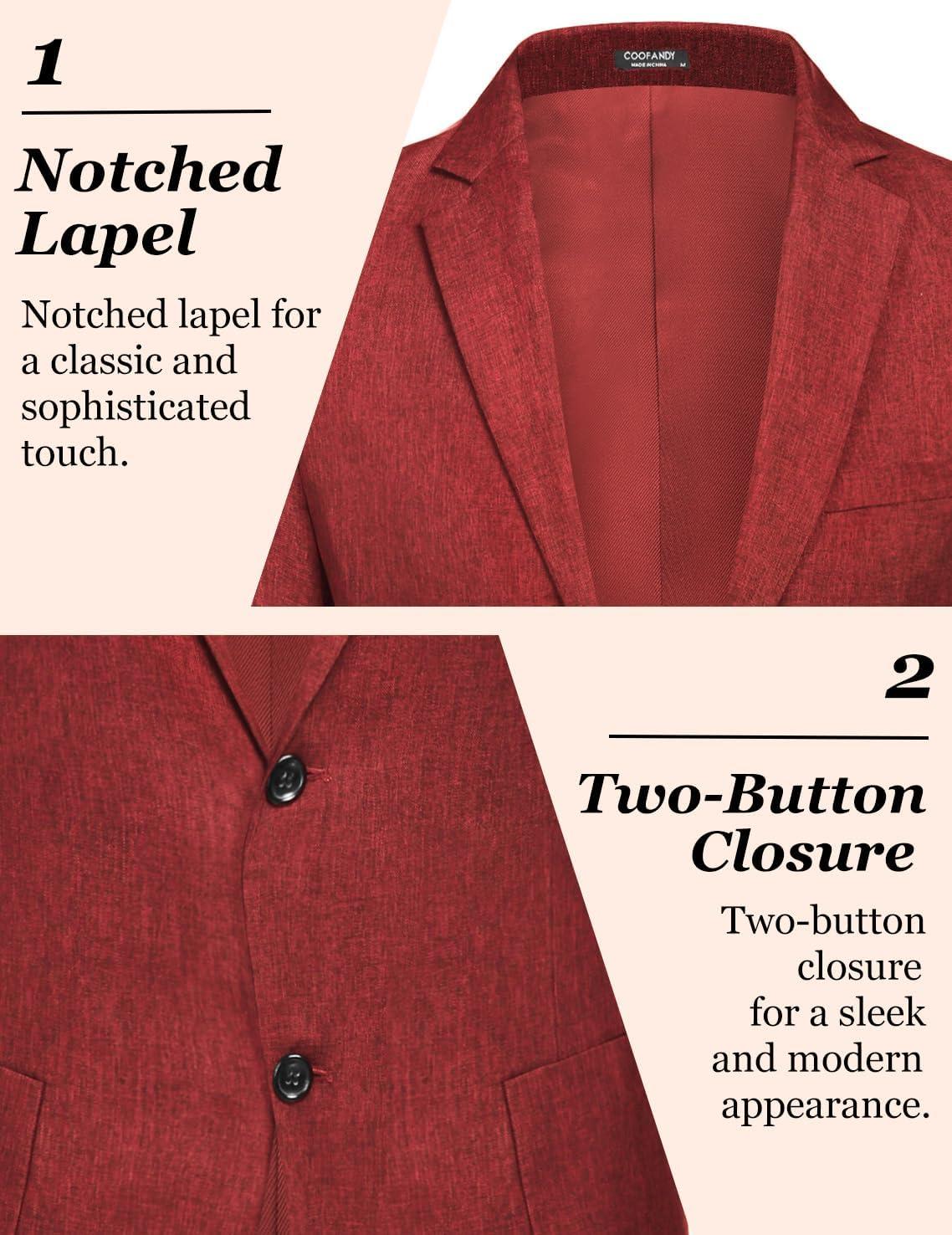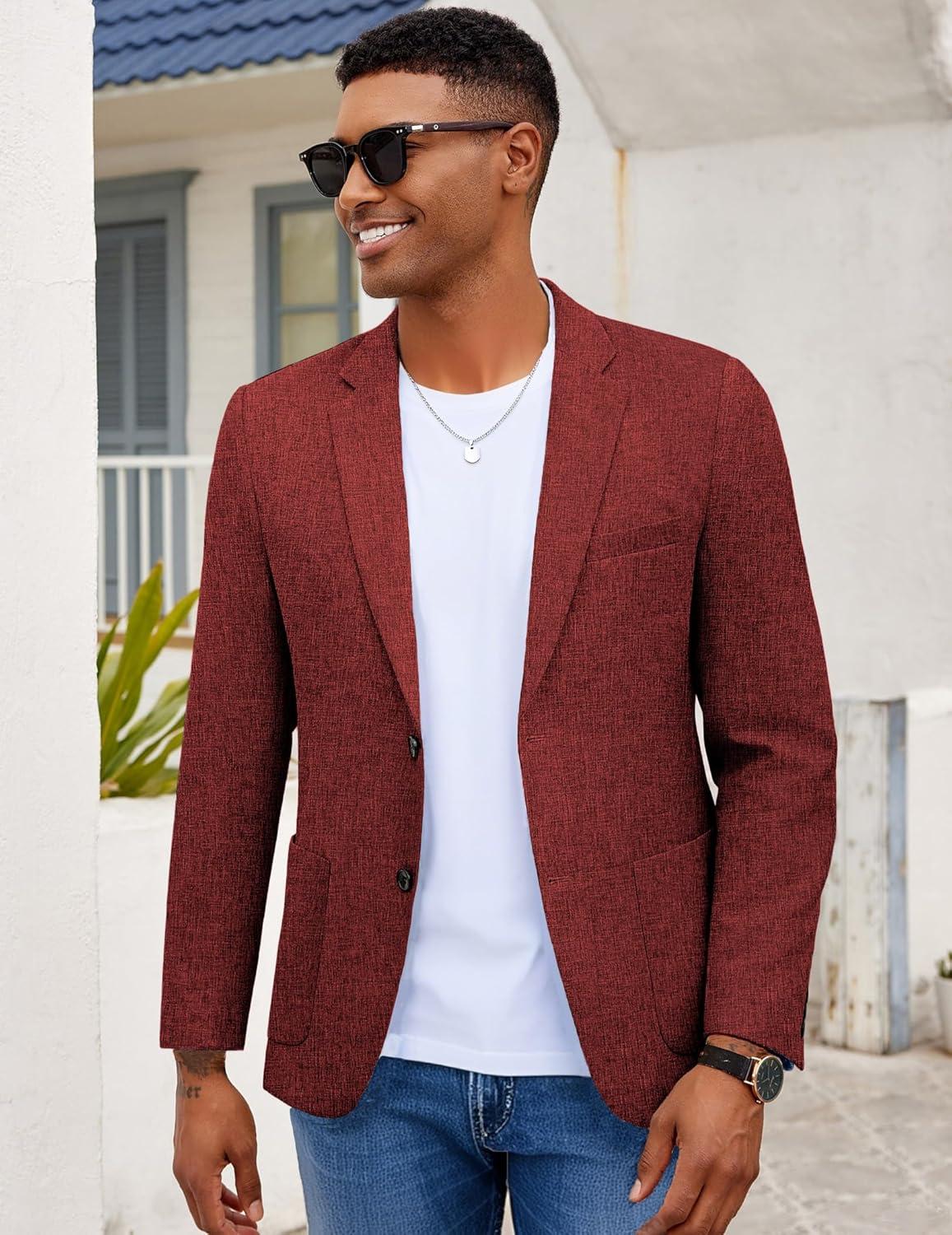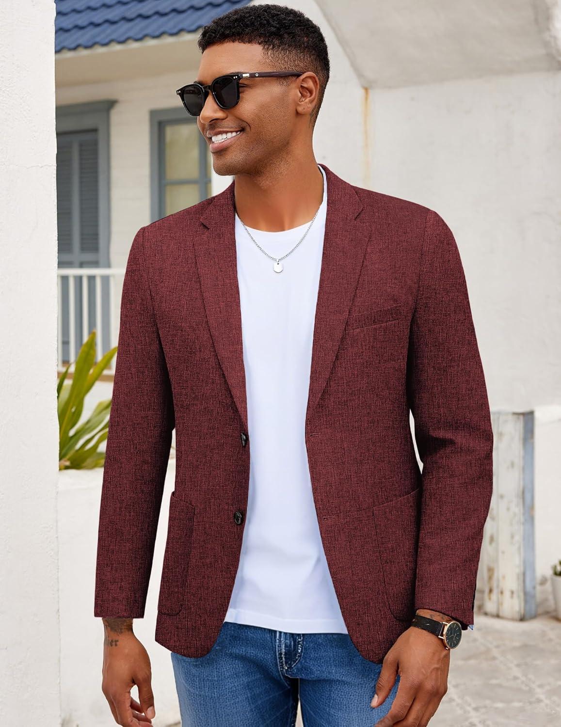 COOFANDY Mens Casual Blazer Slim Fit Sport Coat Lightweight Two Button Suit Jackets(Wine Red)