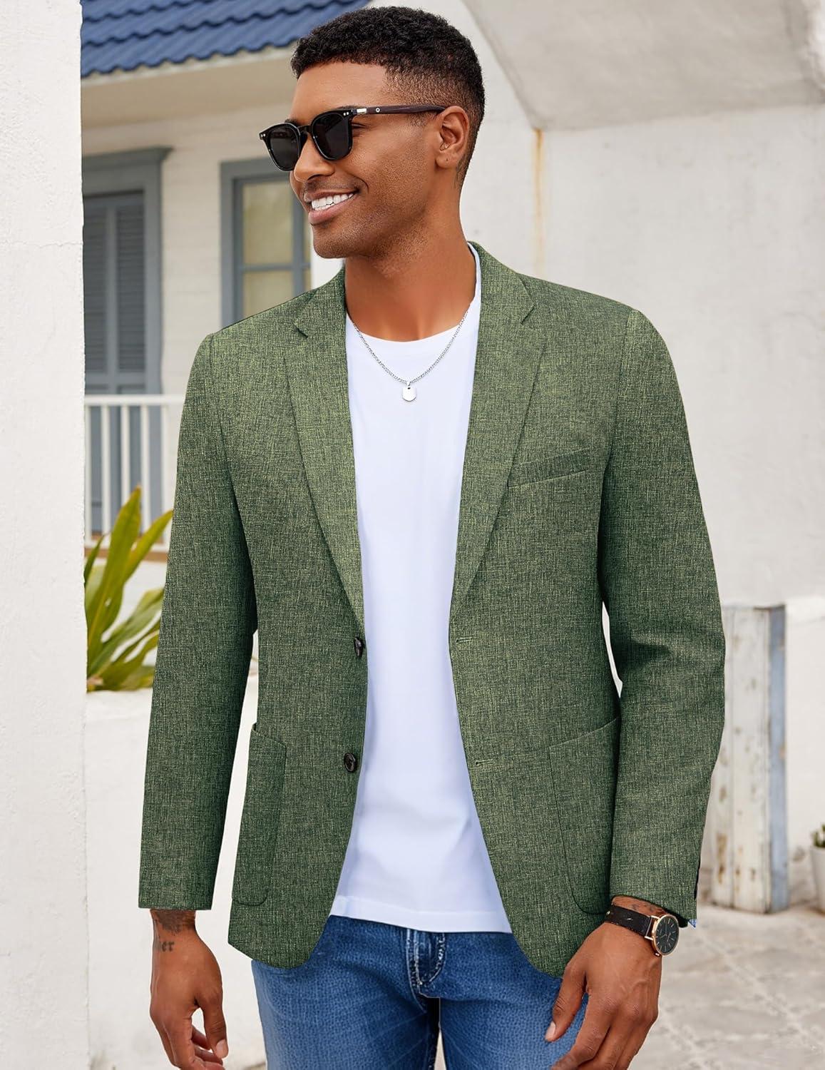 COOFANDY Mens Casual Blazer Slim Fit Sport Coat Lightweight Two Button Suit Jackets(Green)