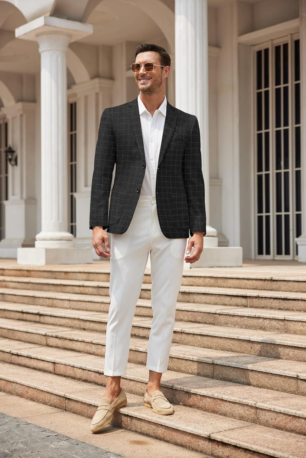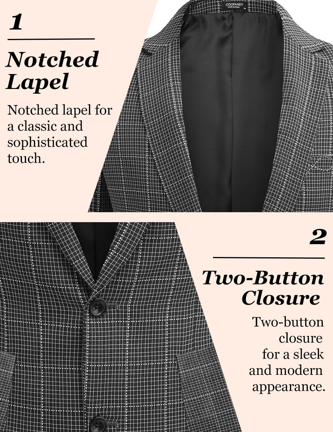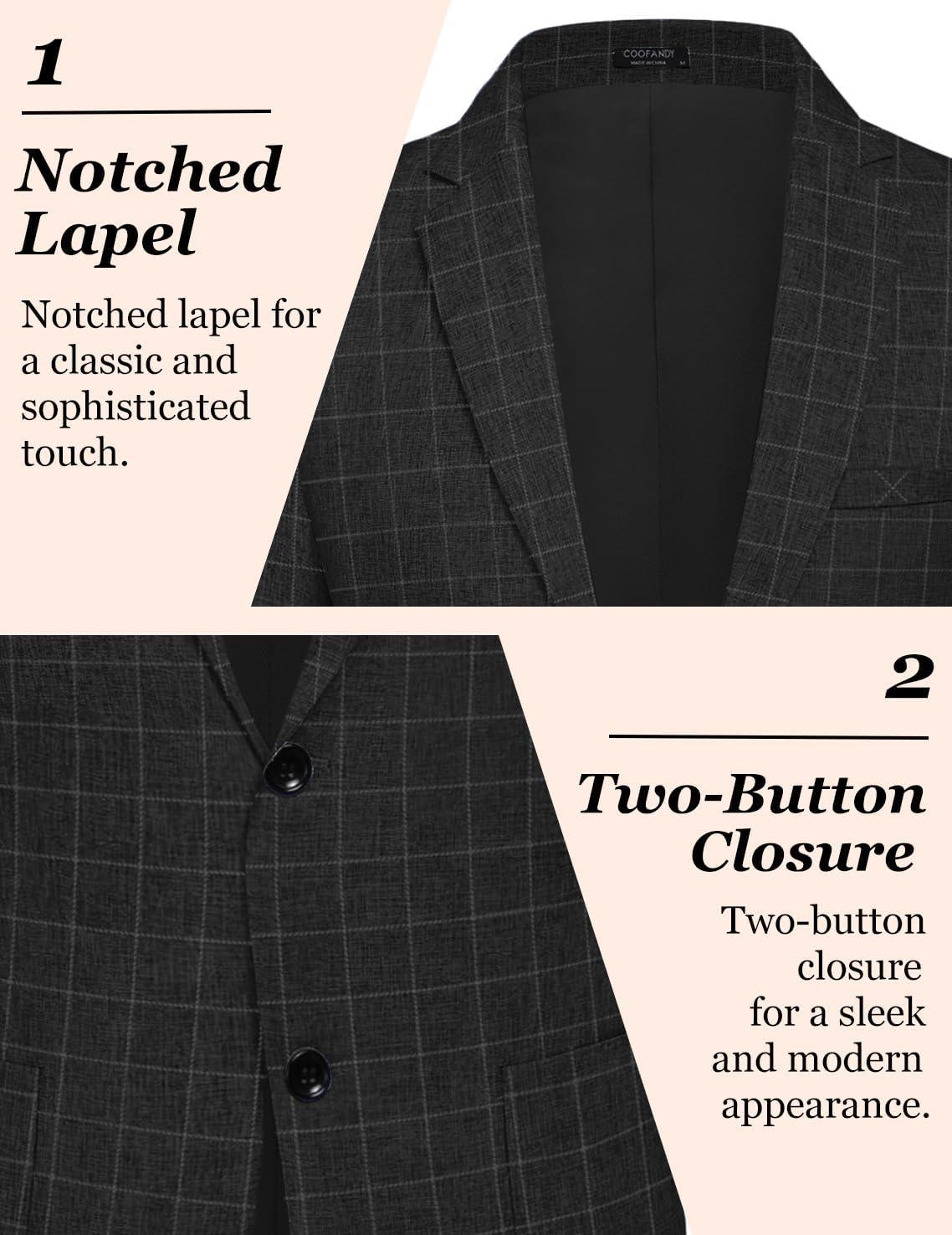 COOFANDY Mens Casual Blazer Slim Fit Sport Coat Lightweight Two Button Suit Jackets(Plaid Blazer- Black)
