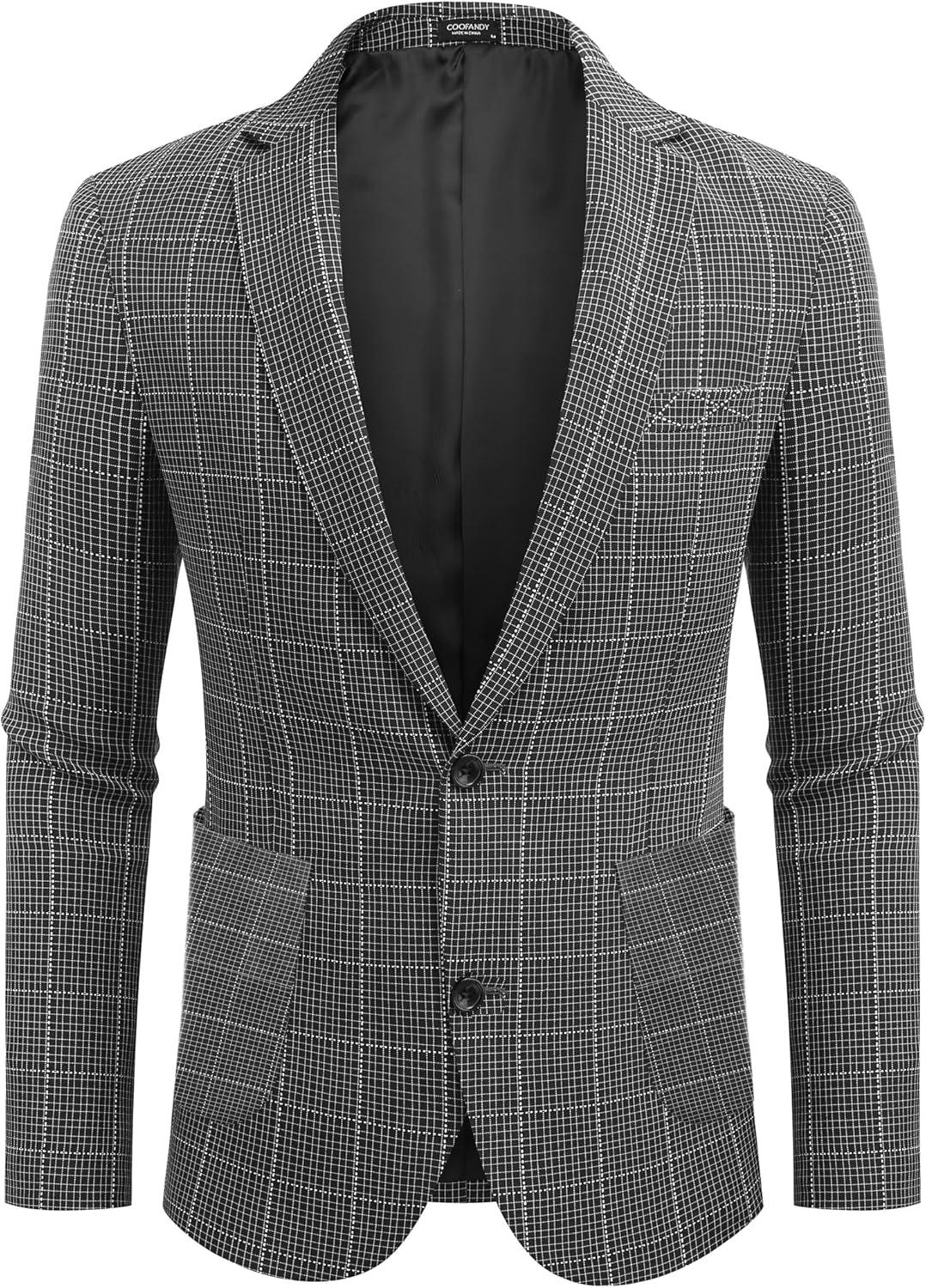 COOFANDY Mens Casual Blazer Slim Fit Sport Coat Lightweight Two Button Suit Jackets(Plaid Blazer- Dark Gray)