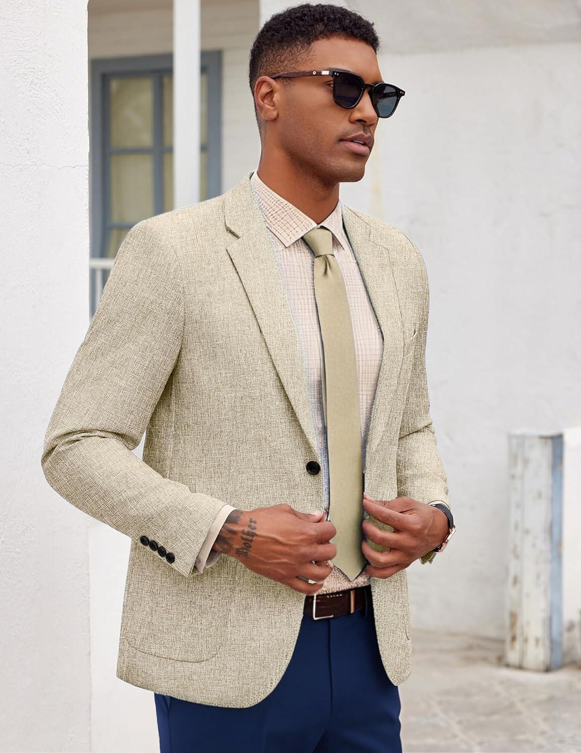 COOFANDY Mens Casual Blazer Slim Fit Sport Coats One Button Business Suit Jacket(Light Khaki)