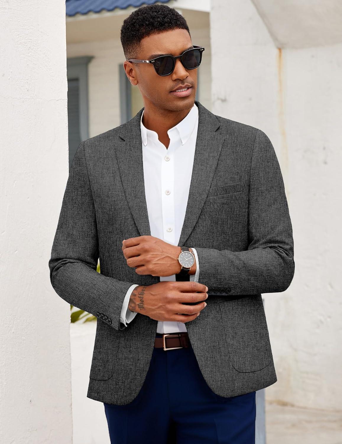 COOFANDY Mens Casual Blazer Slim Fit Sport Coat Lightweight Two Button Suit Jackets(Gray)