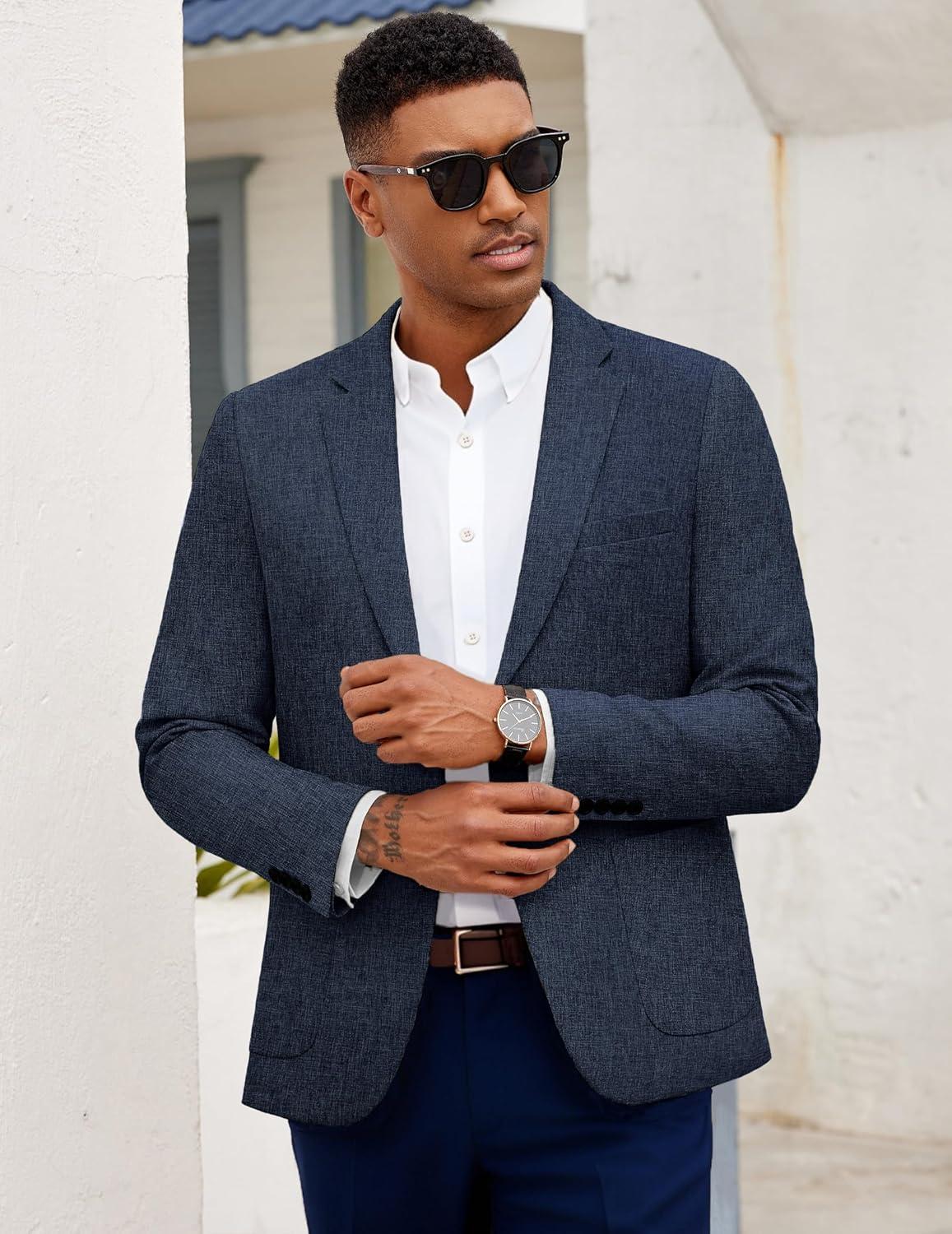 COOFANDY Mens Casual Blazer Slim Fit Sport Coat Lightweight Two Button Suit Jackets(Navy Blue)