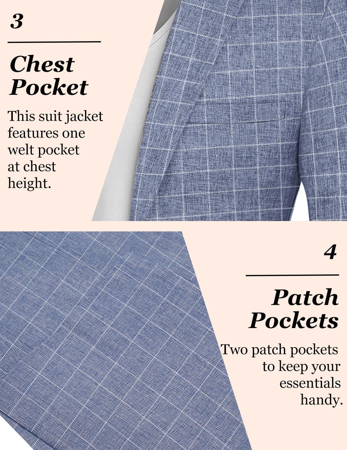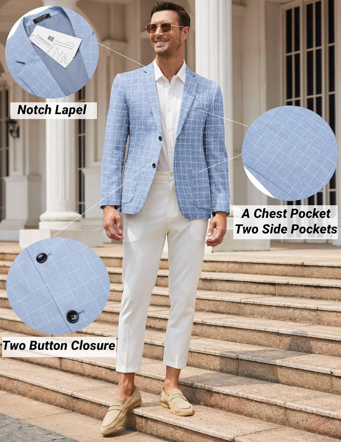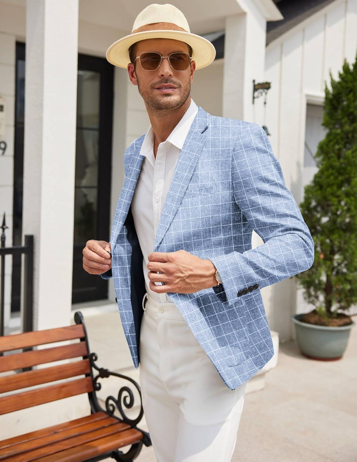 COOFANDY Mens Casual Blazer Slim Fit Sport Coat Lightweight Two Button Suit Jackets(Plaid Blazer- Sky Blue)