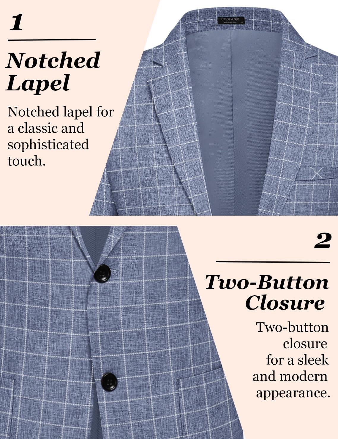 COOFANDY Mens Casual Blazer Slim Fit Sport Coat Lightweight Two Button Suit Jackets(Plaid Blazer- Blue)