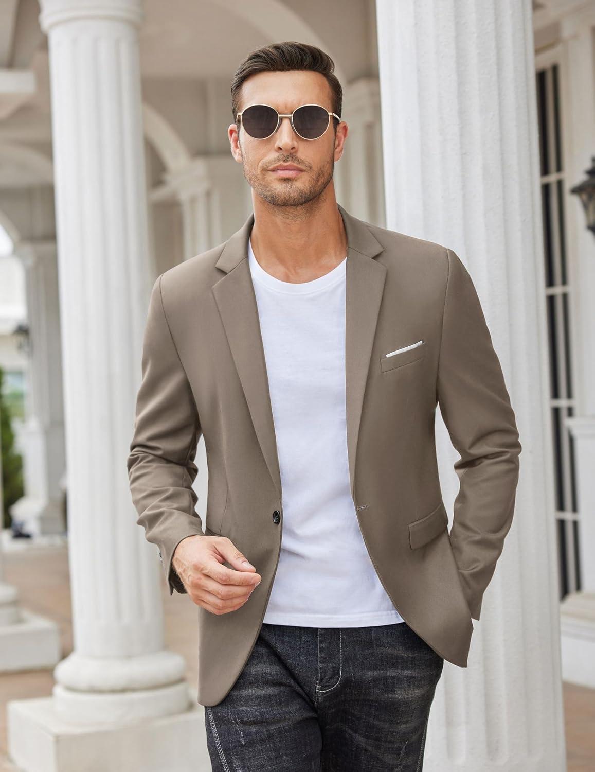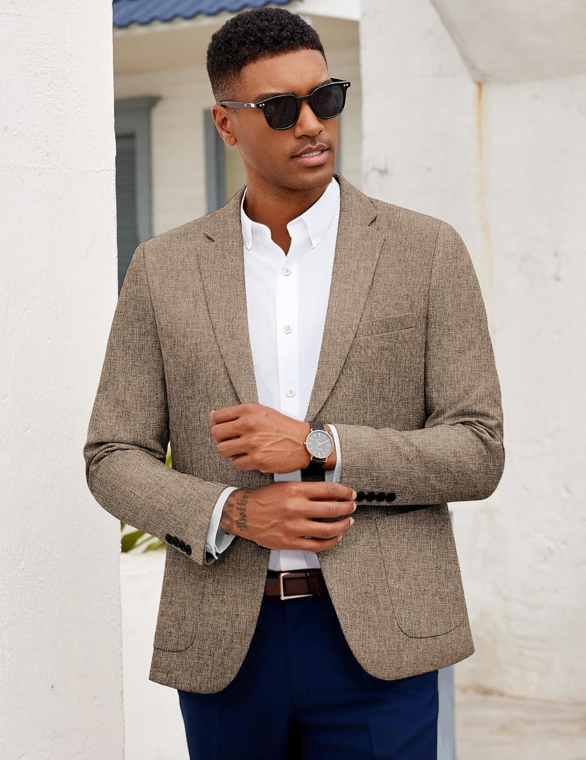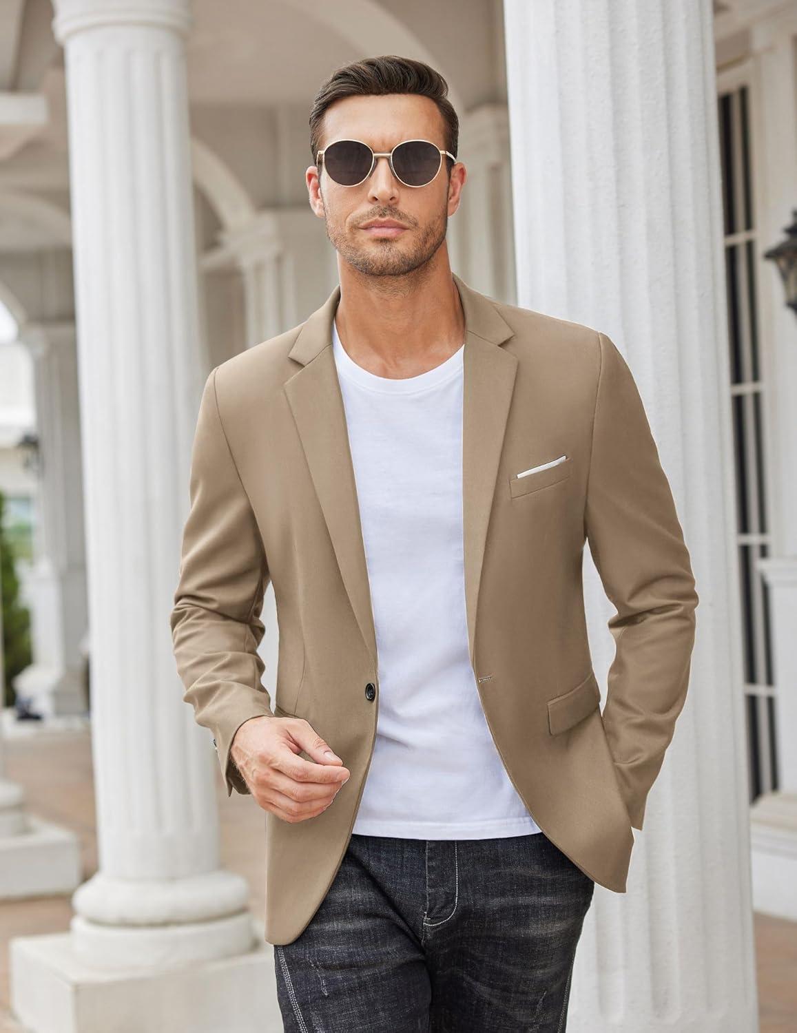 COOFANDY Mens Casual Blazer Slim Fit Sport Coat Lightweight Two Button Suit Jackets(Khaki)
