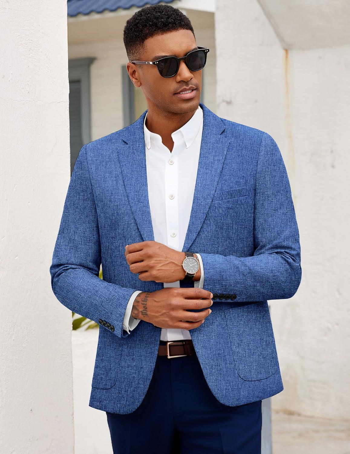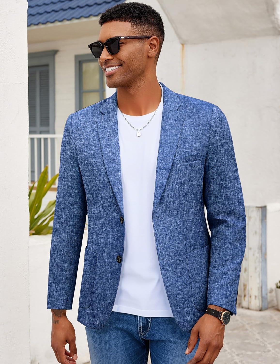COOFANDY Mens Casual Blazer Slim Fit Sport Coat Lightweight Two Button Suit Jackets(Blue)