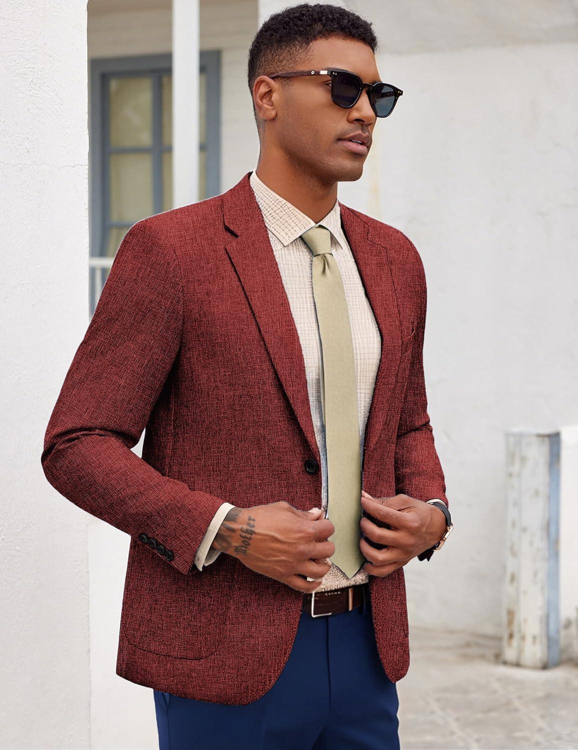COOFANDY Mens Casual Blazer Slim Fit Sport Coat Lightweight Two Button Suit Jackets(Brick Red)