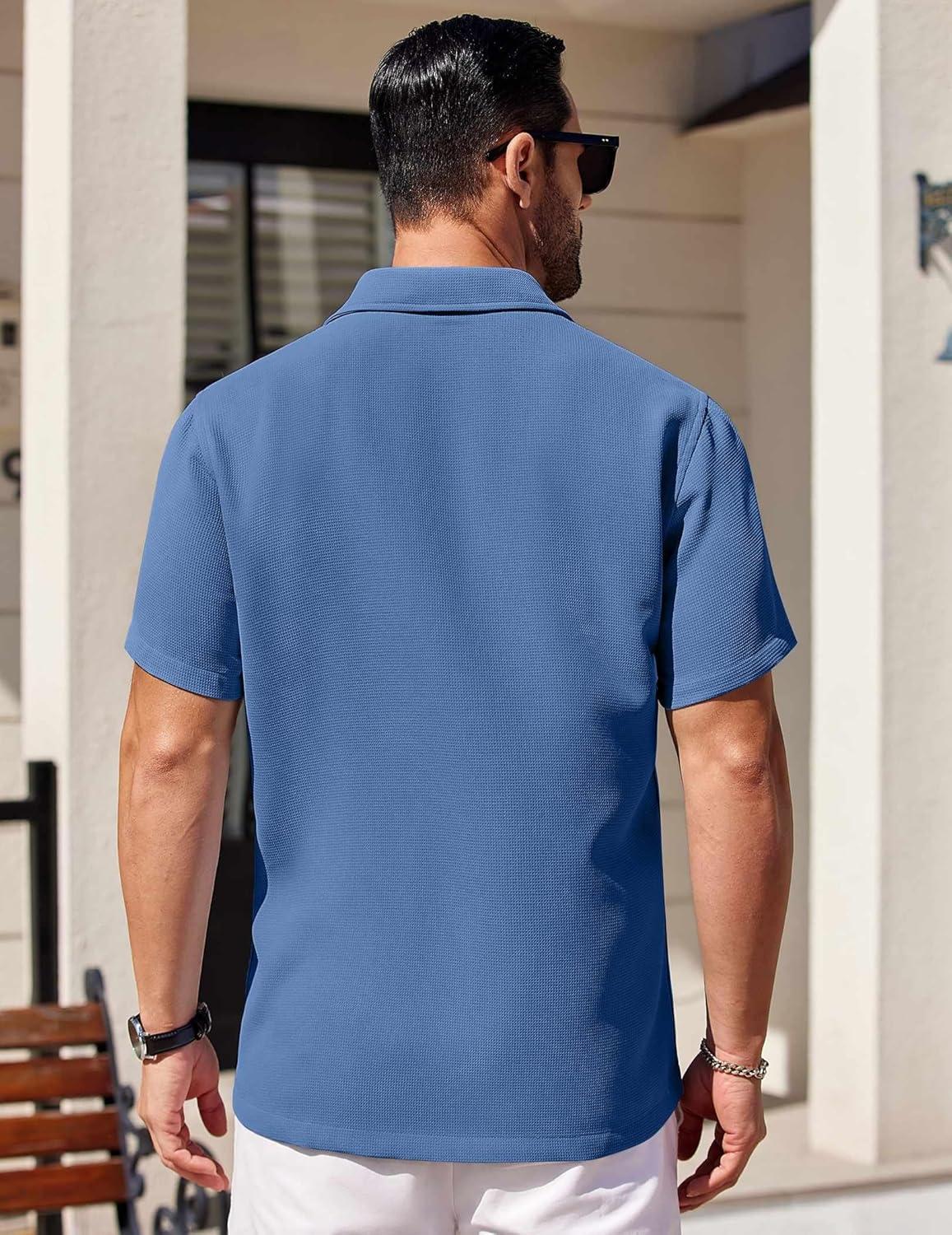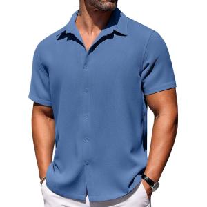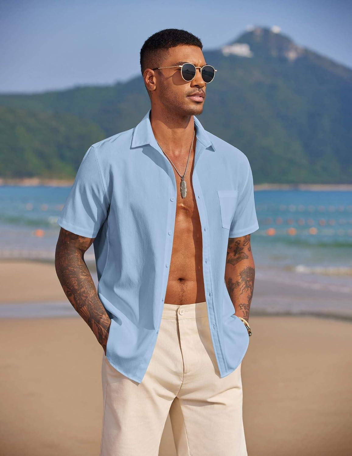 COOFANDY Button Down Short Sleeve Summer Casual Beach Shirts Shirt(Light Blue)