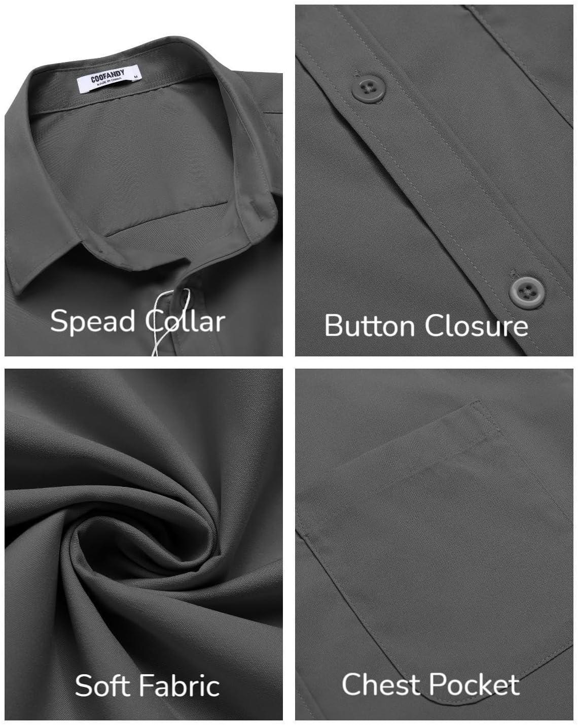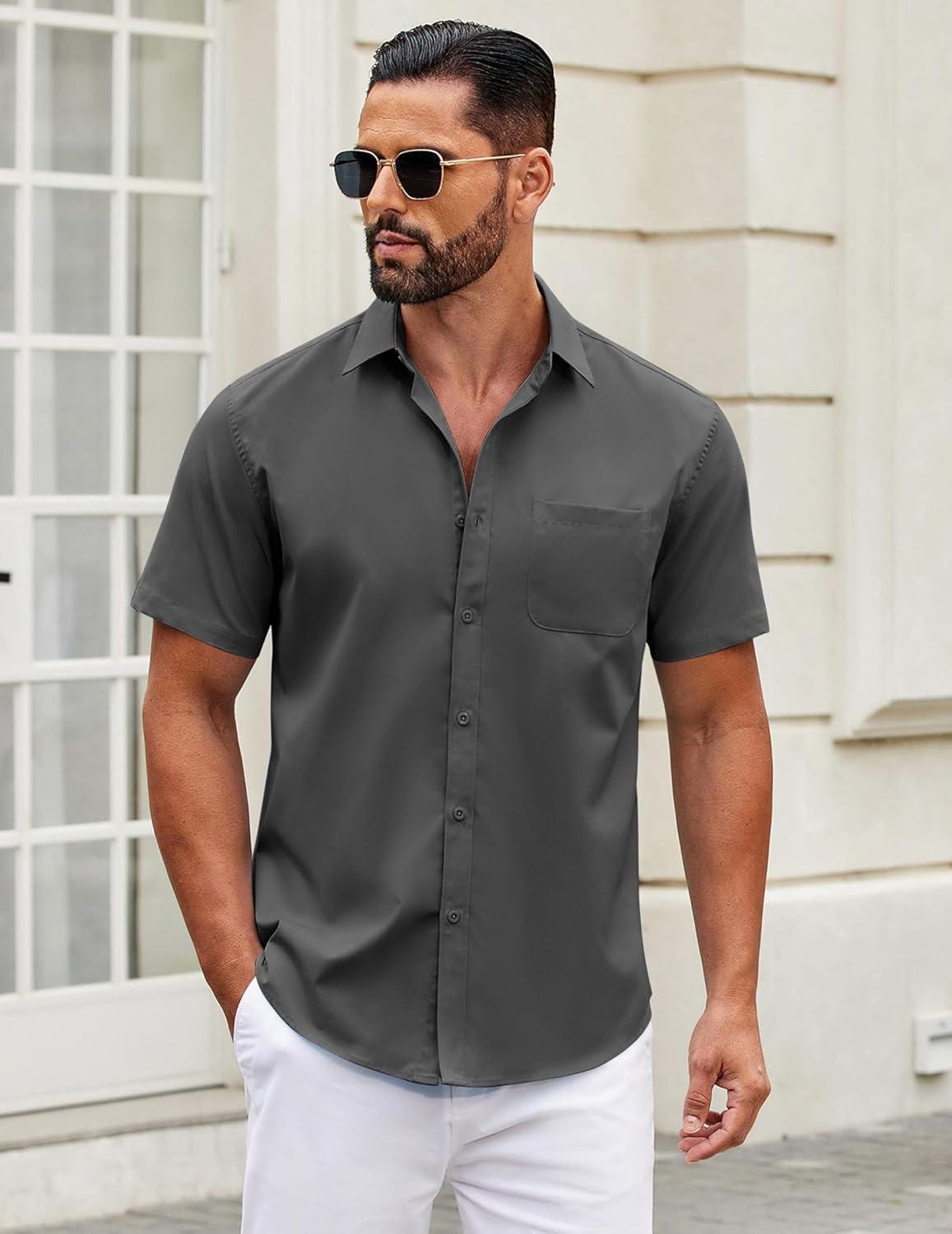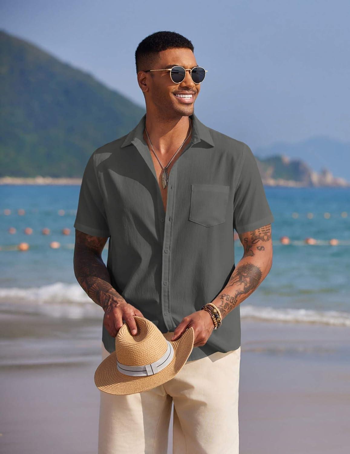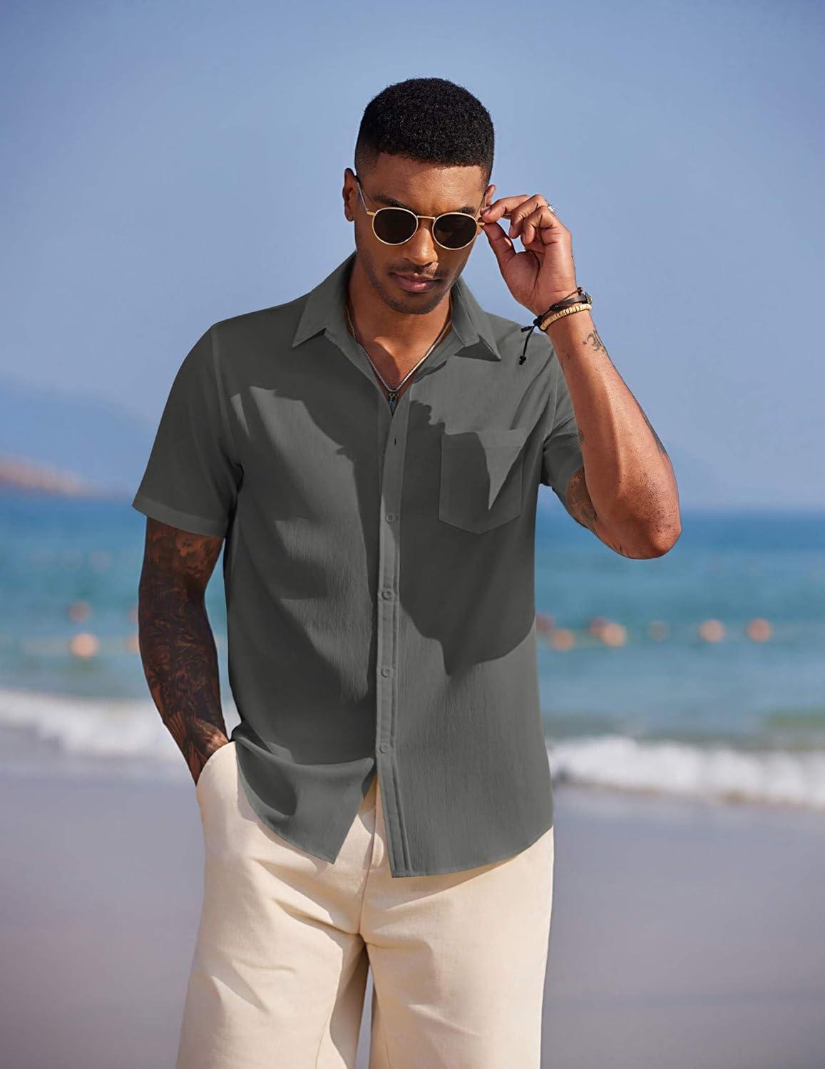 COOFANDY Button Down Short Sleeve Summer Casual Beach Shirts Shirt(Dark Grey)