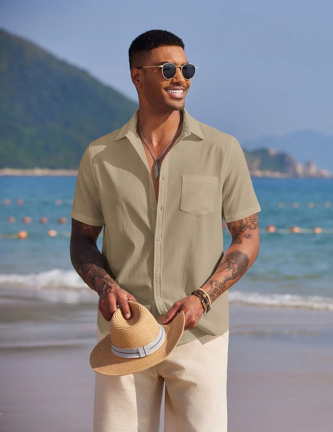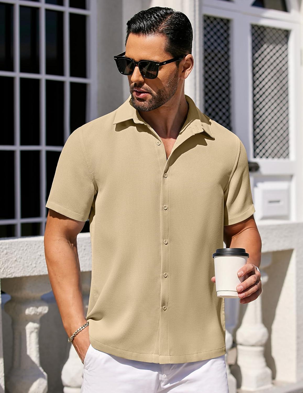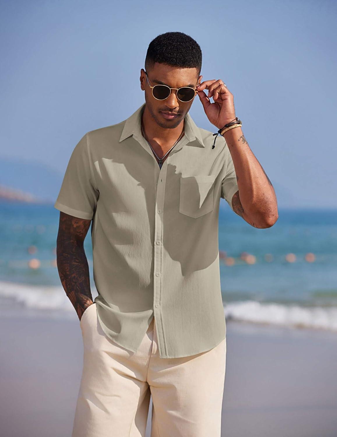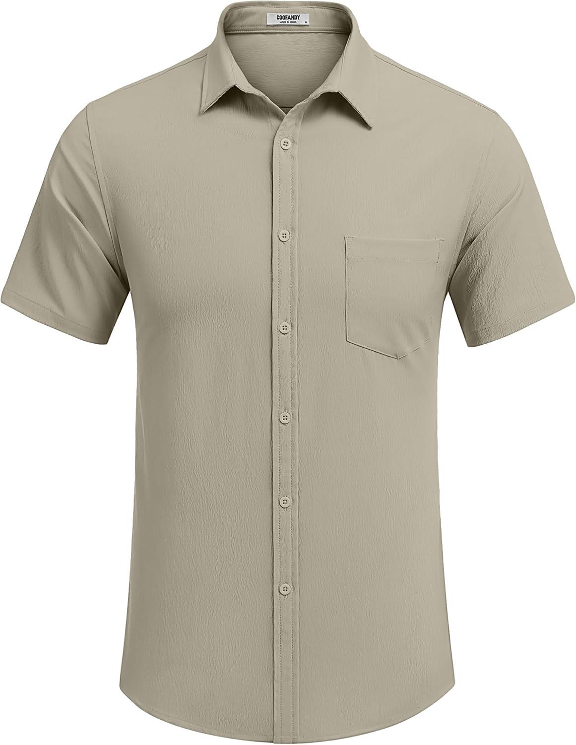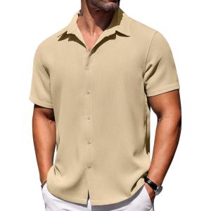 COOFANDY Button Down Short Sleeve Summer Casual Beach Shirts Shirt(Khaki)