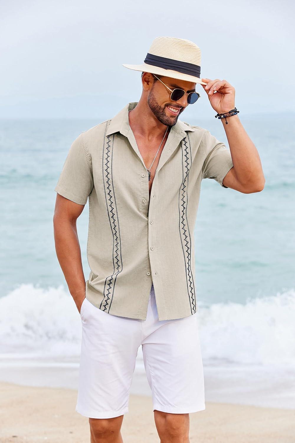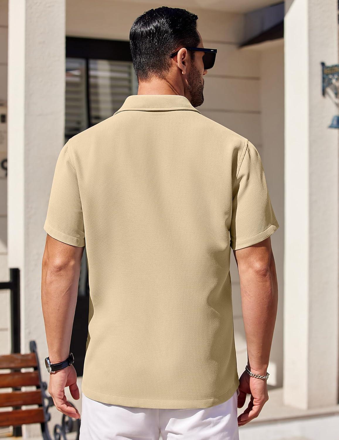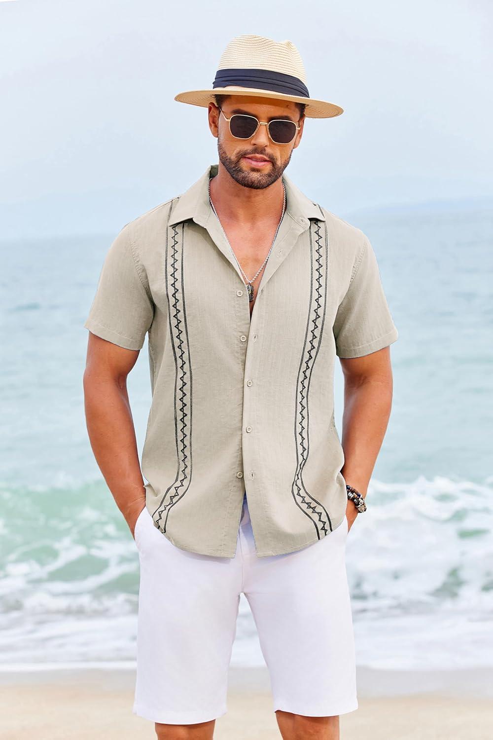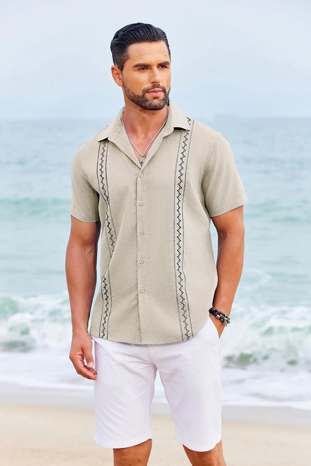 COOFANDY Cuban Guayabera Shirts for Men Short Sleeve Casual Button Down Shirts Summer Vacation Shirts(Beige)