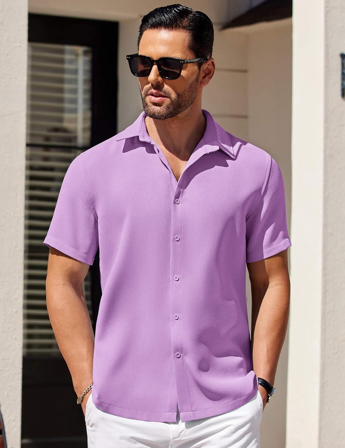 COOFANDY Button Down Short Sleeve Summer Casual Beach Shirts Shirt(Light Purple)