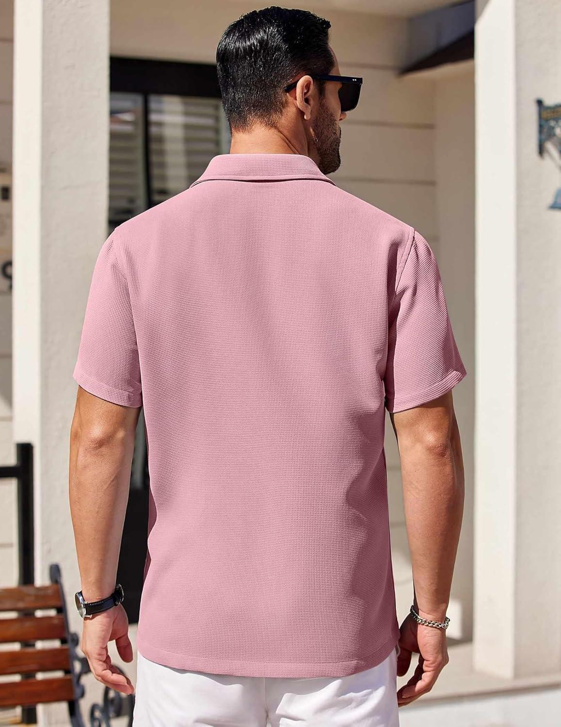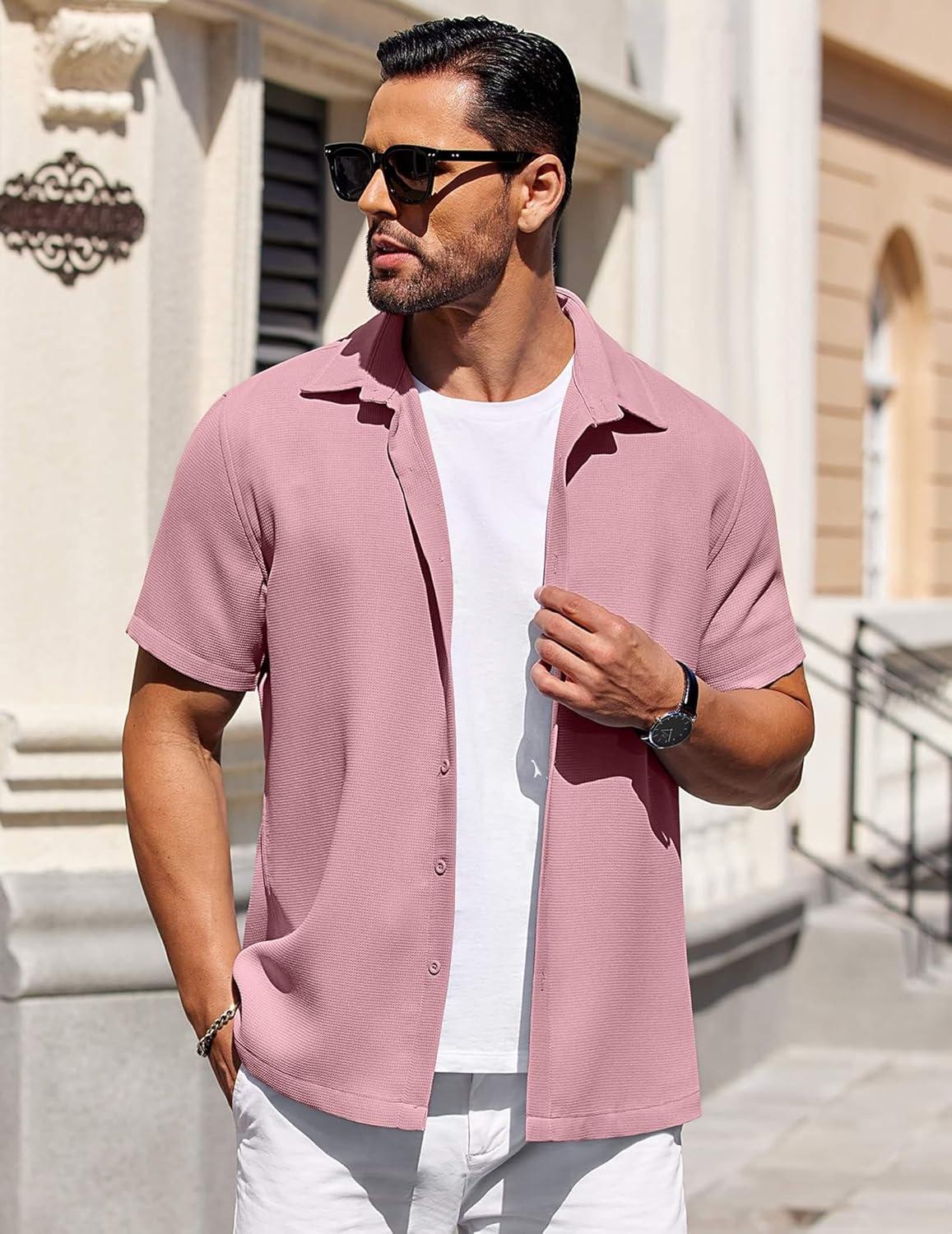 COOFANDY Button Down Short Sleeve Summer Casual Beach Shirts Shirt(Pink)
