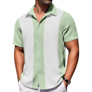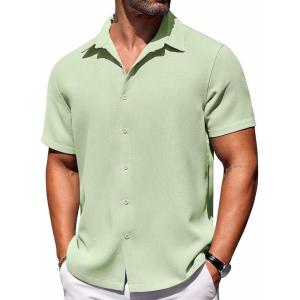 COOFANDY Button Down Short Sleeve Summer Casual Beach Shirts Shirt(Light Green)