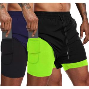 COOFANDY Men’s 2 Pack Running Shorts 2 in 1 Workout Shorts Quick Dry Gym Training Athletic Jogger with Phone Pockets(2-pack:black(fluorescent)+navy Blue)