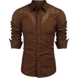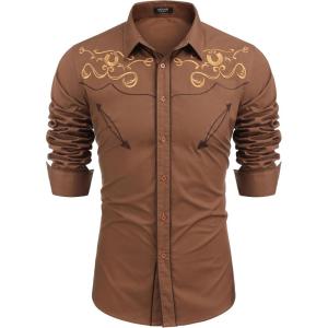 COOFANDY Men’s Western Cowboy Shirts Long Sleeve Embroidered Shirt Slim Fit Casual Button Down Shirts(Brown)