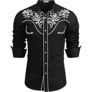 COOFANDY Men’s Western Cowboy Shirts Long Sleeve Embroidered Shirt Slim Fit Casual Button Down Shirts(01-black)