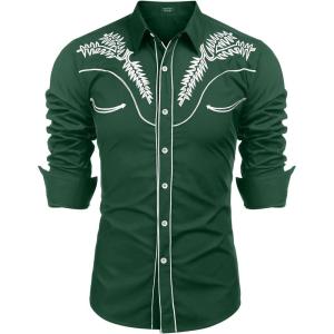 COOFANDY Men’s Western Cowboy Shirts Long Sleeve Embroidered Shirt Slim Fit Casual Button Down Shirts(Dark Green)