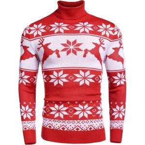 COOFANDY Men’s Slim Fit Turtleneck Sweater Casual Basic Knitted Long Sleeve Pullover Sweater(Red)