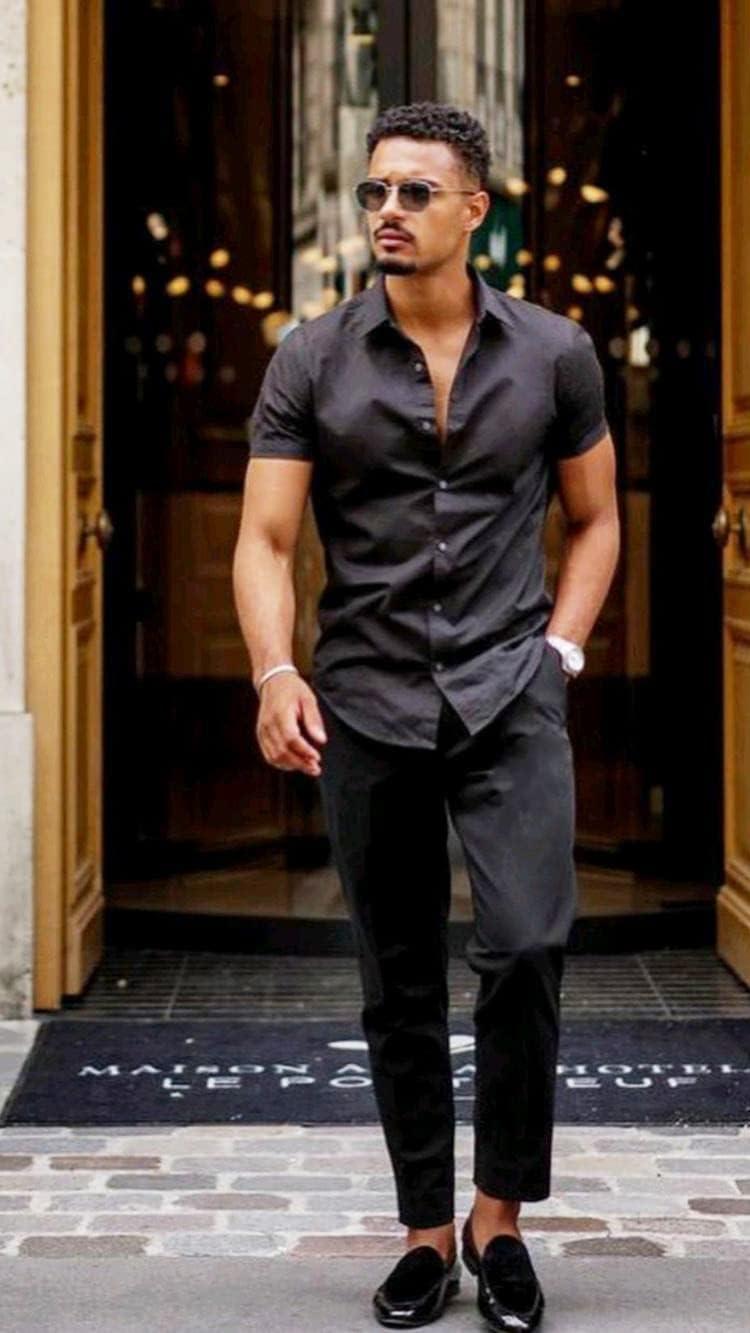 COOFANDY Men’s Casual Henley Shirt Band Collar Short Sleeve Shirt Summer Beach Hippie T-Shirt(White Stripes on Black)