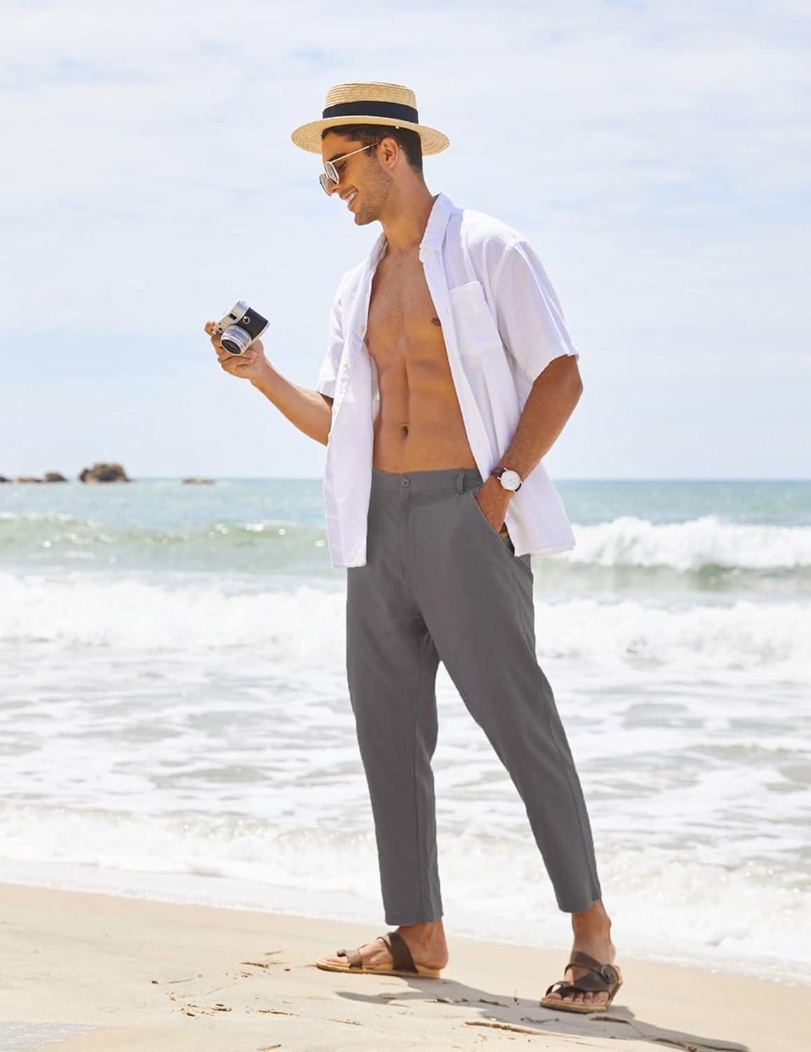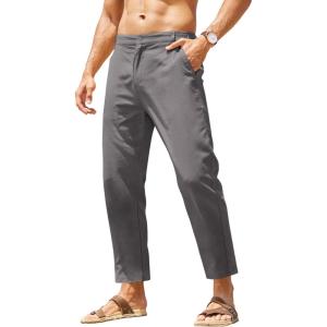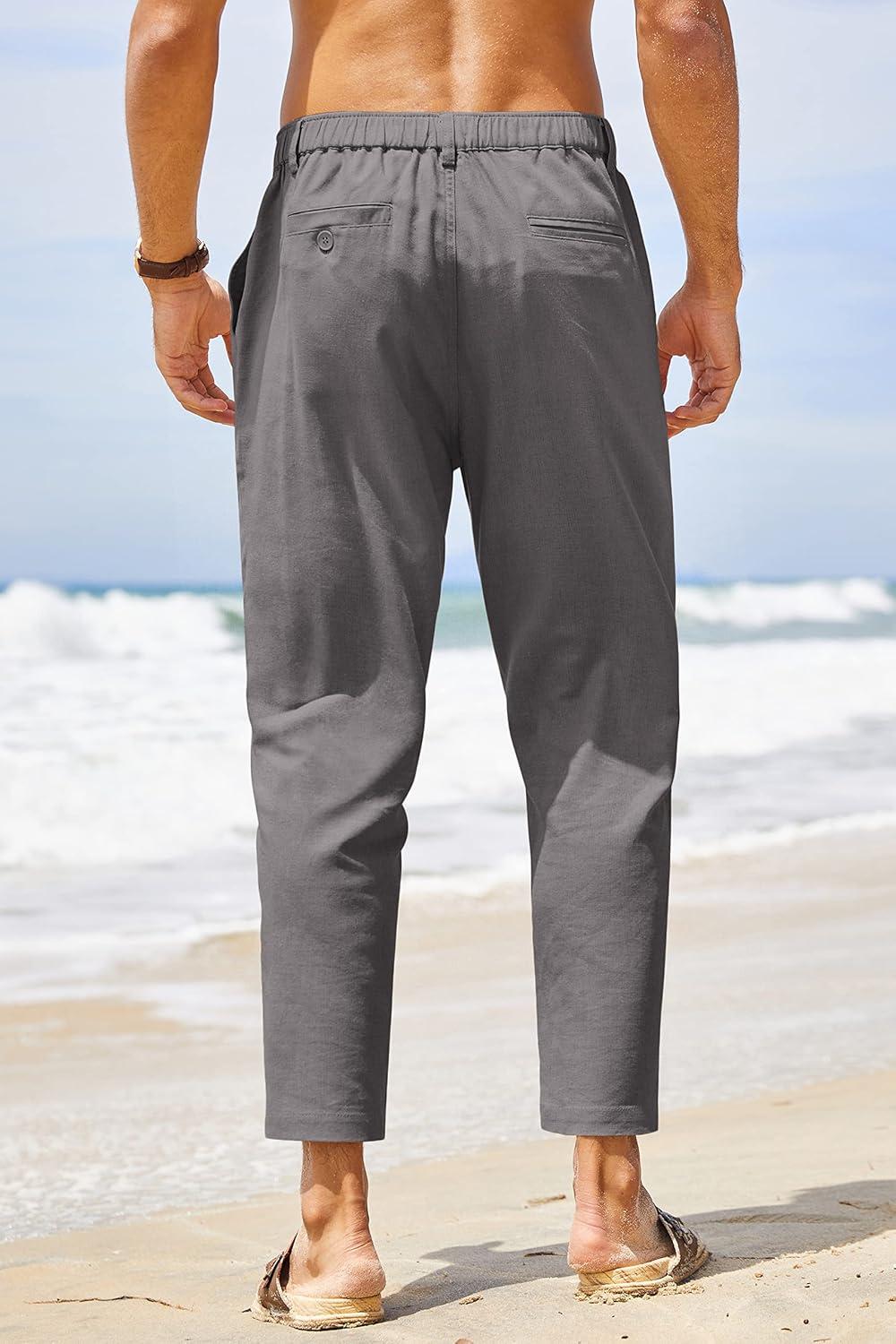 COOFANDY Men’s Cotton Linen Pants Elastic Waist Lightweight Casual Pants Relaxed Fit Yoga Beach Pants with Pockets(02-grey)