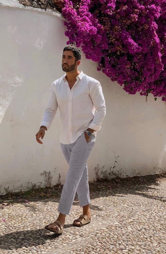 COOFANDY Men’s Cotton Linen Pants Elastic Waist Lightweight Casual Pants Relaxed Fit Yoga Beach Pants with Pockets(01-white)