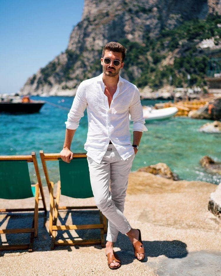COOFANDY Men’s Casual Henley Shirt Band Collar Short Sleeve Shirt Summer Beach Hippie T-Shirt(White)