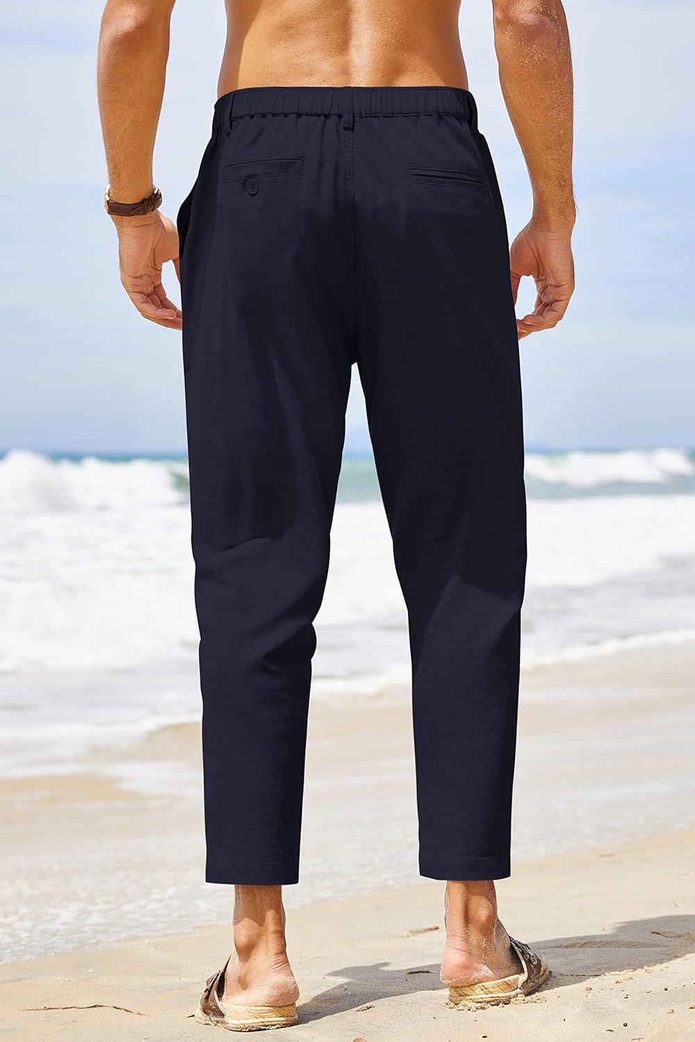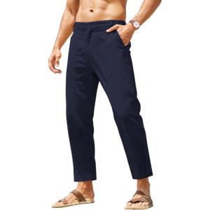 COOFANDY Men’s Cotton Linen Pants Elastic Waist Lightweight Casual Pants Relaxed Fit Yoga Beach Pants with Pockets(02-navy)