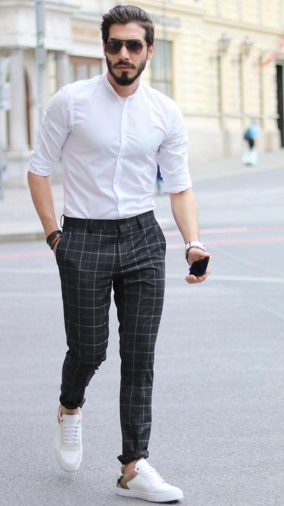 COOFANDY Men’s Cotton Linen Pants Elastic Waist Lightweight Casual Pants Relaxed Fit Yoga Beach Pants with Pockets(Black( Plaid ))