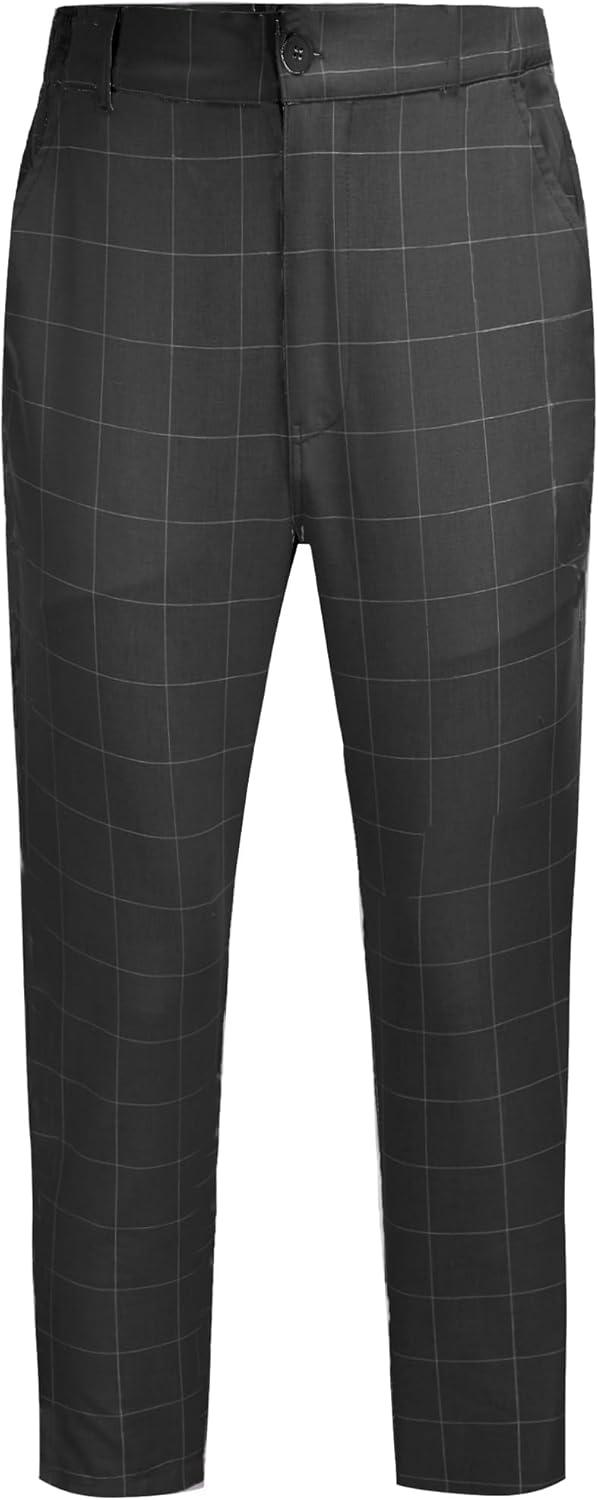 COOFANDY Men’s Cotton Linen Pants Elastic Waist Lightweight Casual Pants Relaxed Fit Yoga Beach Pants with Pockets(Grey( Plaid ))
