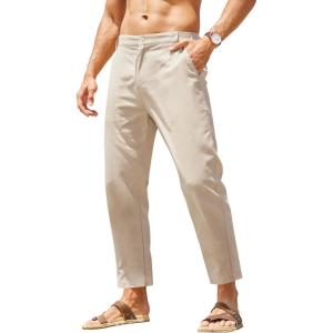 COOFANDY Men’s Cotton Linen Pants Elastic Waist Lightweight Casual Pants Relaxed Fit Yoga Beach Pants with Pockets(02-nude)