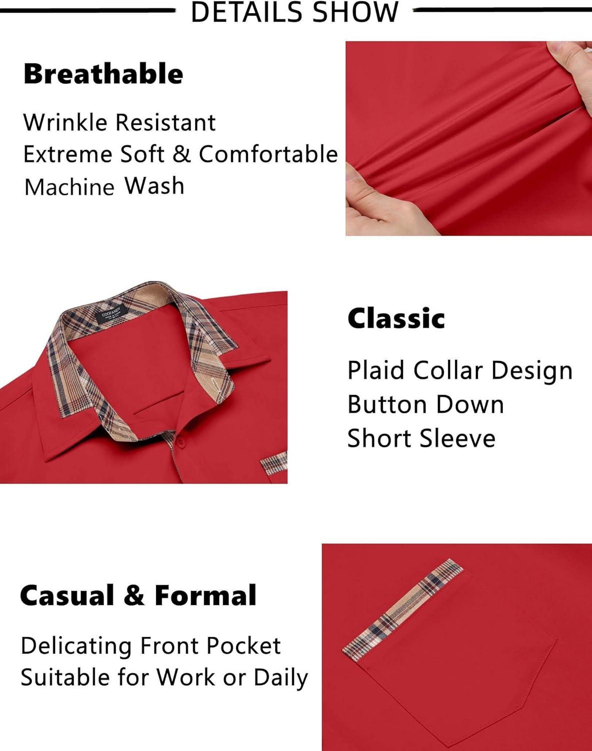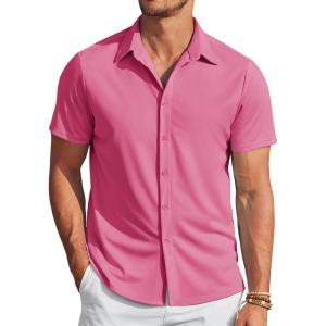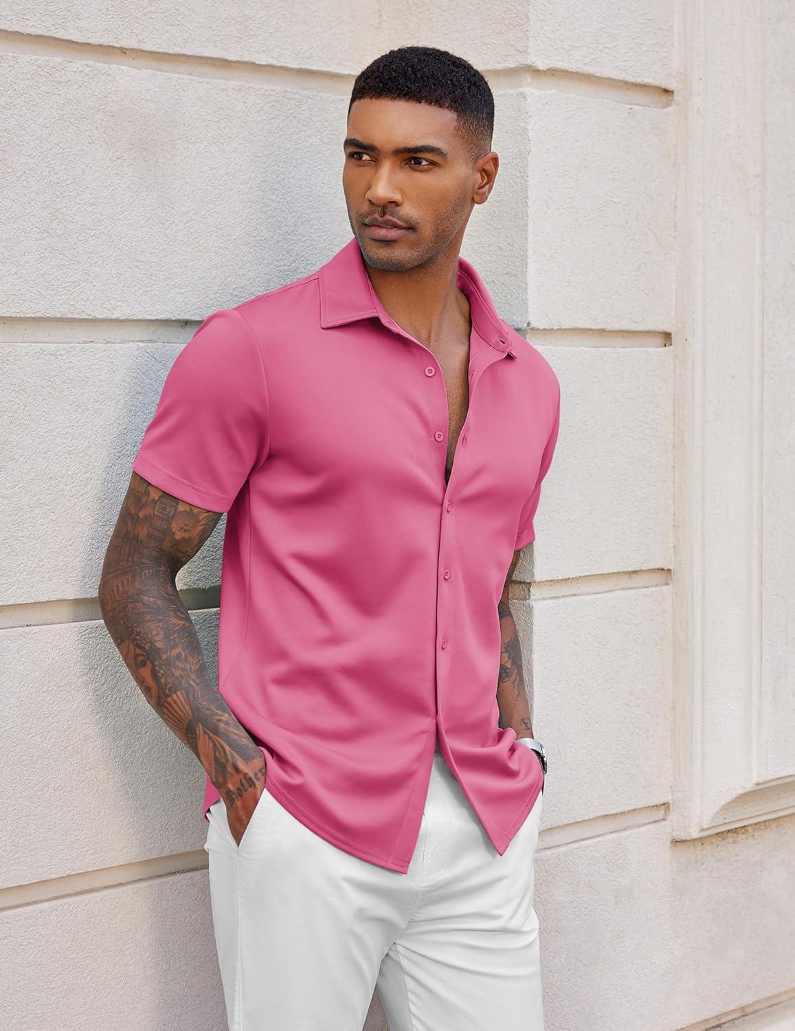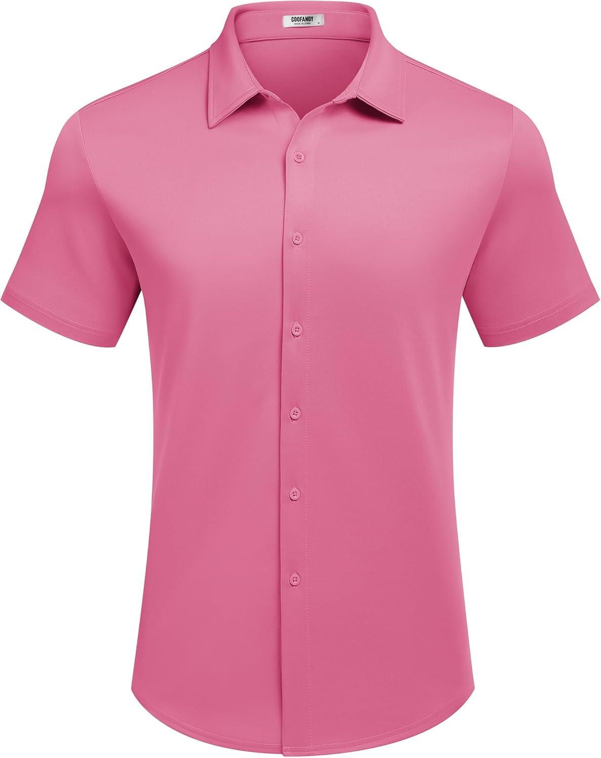 • COOFANDY Mens Casual Wrinkle Free Shirts Short Sleeve Button Down Summer Stretch Dress Shirt(Hot Pink)